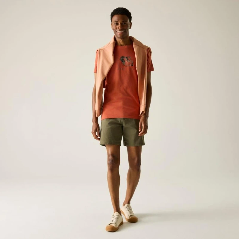 Férfi póló, 100% pamut póló – puha, UV-védett, grafikai mintával, Ez a 100% pamut single jersey anyagból készült póló (160 g/m?) rendkívül puha, kényelmes viseletet biztosít egész napra. A stílusos grafikai nyomat modern megjelenést ad, miközben a 50+ UPF UV-védelem védi a bőrt a nap káros sugarai ellen. Ideális könnyû, hétköznapi vagy szabadtéri használatra, ahol a kényelem és a védelem egyaránt fontos., 100% pamut single jersey – 160 g/m?, Extra puha, kellemes tapintás, Grafikai nyomat a stílusos megjelenésért, 50+ UPF UV-védelem, Ajánlott:, Szabadtéri tevékenységekhez, kiránduláshoz, városi viselethez, könnyû sportokhoz, nyári programokhoz, ahol fontos a kényelem és a nap elleni védelem.