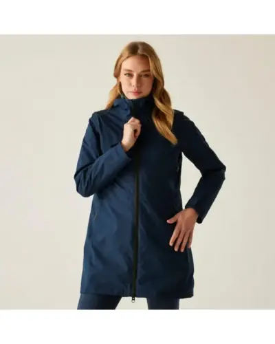 Női vízálló átmeneti kabát, Anyag: Isotex 10000 vízálló és légáteresztő poliészter (110 g/m?), Légáteresztés: 10 000 g/m?/24 óra, Védelem: Tartós vízlepergető bevonat és ragasztott varrások a teljes vízállóságért, Bélés: Nyomott mintás 100% poliészter taft, Kapucni: Beépített kapucni a jobb védelem érdekében, Derék: Állítható húzózsinórral a testreszabott illeszkedésért, Mandzsetta: Állítható patentos rögzítés, Zsebek: 2 cipzáras alsó zseb, belső biztonsági zseb, Kialakítás: Meghosszabbított hátsó rész az extra védelemért, Fenntarthatóság: Újrahasznosított anyagokból készült, Ez a könnyû és funkcionális kabát tökéletes választás azoknak, akik vízálló, légáteresztő és fenntartható megoldást keresnek mindennapi vagy outdoor használatra. Állítható illeszkedése és praktikus zsebei kényelmes viseletet biztosítanak bármilyen időjárási körülmények között.