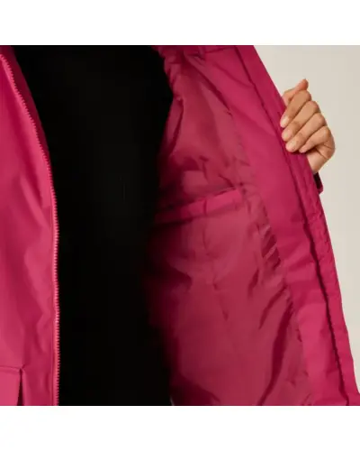 Női bélelet kabát, színtől függő anyagösszetétel:, Vízálló Hydrafort 100% poliészter anyag, Vízálló Hydrafort 100% poliészter nyomott cirmos mintás anyag, Tartós vízlepergető felület, 100%-ban újrahasznosított Thermoguard szigetelő töltet, Ragasztott varratok, Belső biztonsági zseb, fix kapucni szőrme béléssel, Luxus mûszőrme hát berakással, tépőzárral állítható mandzsetta , 2 alsó zseb