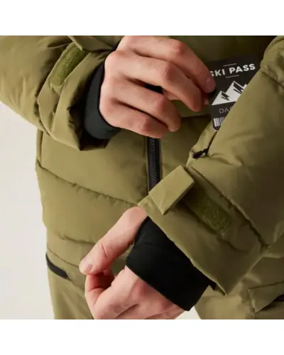 Férfi síkabát 15.000 mm, Férfi technikai síkabát Ared 15/15 anyaggal – megbízható védelem és kényelem a hegyen, Ez a férfi síkabát Ared 15/15 technikai szövettel készült, amely 15 000 mm-es vízállóságot és kiváló légáteresztést biztosít. A kritikus helyeken ragasztott varrások és a tartós vízlepergető bevonat gondoskodnak arról, hogy szárazon maradj még változékony, havas időben is. A szélálló kivitel, a meleg szigetelés és a teljes sífelszerelés-kompatibilitás garantálják, hogy a pályán és azon kívül is maximális kényelmet nyújtson., Anyag: víz- és szélálló Ared 15/15 technikai szövet – 15 000 mm vízállóság, magas légáteresztés, Tartós vízlepergető bevonat, PFC-, PFOA- és PFOS-mentes kivitel, Kritikus varrások ragasztva a célzott vízállóságért, Kopásálló erősítések a hosszabb élettartamért, Újrahasznosított, magas melegtartású szigetelés, Újrahasznosított poliészter bélés scrim hátpanellel a fokozott hőérzetért, Szélálló kivitel a hideg elleni védelemhez, Beépített, állítható technikai kapucni merevített silddel és magas gallérral, Teljes sífunkciók: síbérlet zseb, levehető hószoknya gélbetétes rögzítéssel, Belső hálós zseb síszemüveg-lencse törlőkendővel, Két cipzáras alsó zseb, Hüvelykujj-bújtatós belső mandzsetta, Ajánlott: síeléshez, snowboardozáshoz, téli sportokhoz és hideg, szeles időjárási körülményekhez, Fenntarthatóság: újrahasznosított anyagból készült, PFC-, PFOA- és PFOS-mentes kivitel