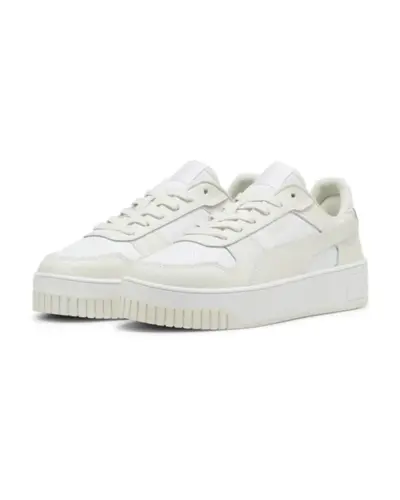 The Carina Street has a streetwear-inspired design in combination with a true platform profile, providing the perfect choice for your everyday outfit. The full leather upper is streetwear inspired with toe overlay and basketball touch. It s accented by a perforated vamp and a synthetic leather PUMA Formstrip. The highlight of the shoe is the new cupsole tooling though with a slightly elevated platform sole with texture interest in toe and heel area. The SoftFoam+ sockliner provides superior cush