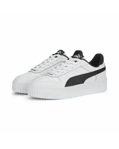 The Carina Street has a streetwear-inspired design in combination with a true platform profile, providing the perfect choice for your everyday outfit. The full leather upper is streetwear inspired with toe overlay and basketball touch. It s accented by a perforated vamp and a synthetic leather PUMA Formstrip. The highlight of the shoe is the new cupsole tooling though with a slightly elevated platform sole with texture interest in toe and heel area. The SoftFoam+ sockliner provides superior cush