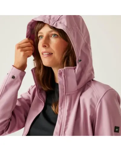 Női softshell kabát, 96% poliészter/4% elasztán, hálós hátlapú szövött Softshell XPT, vízálló anyag, Légáteresztő képesség 10 000/m?/24 óra, Tartós vízlepergető felület a testre, Rejtett, levehető kapucni , 2 alsó zseb