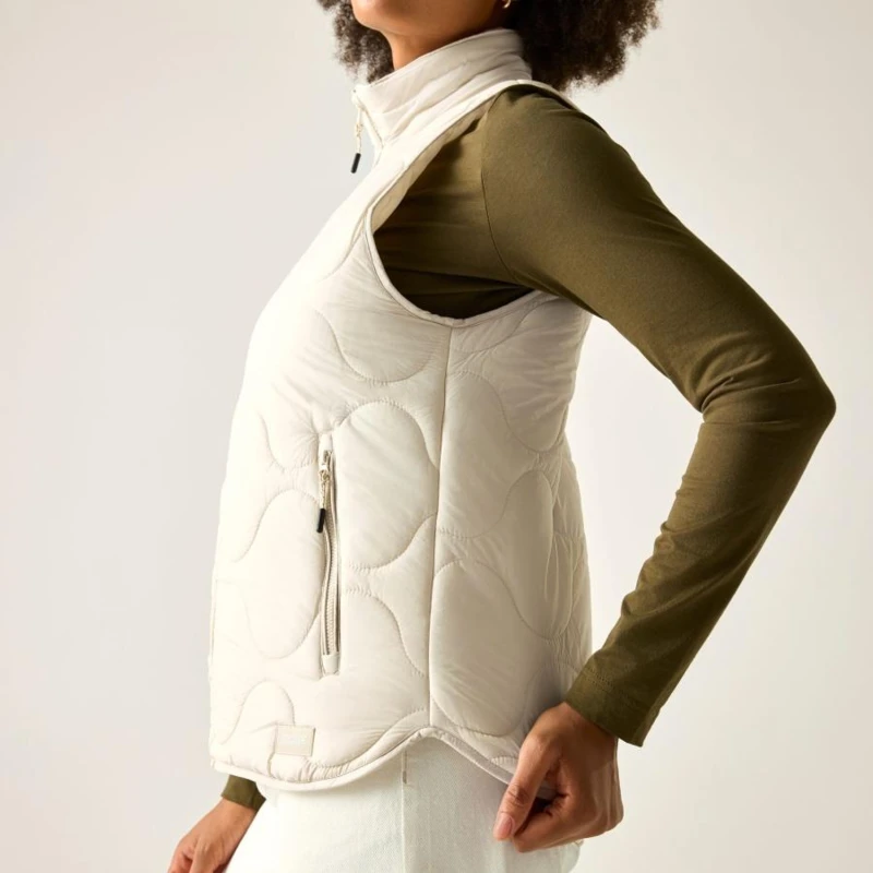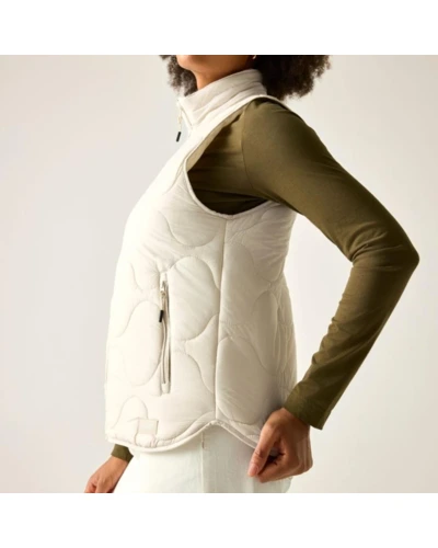 Női mellény, Prémium női könnyû szigetelt mellény – Warmloft down-touch, vízlepergető kivitel, 100 g/m?, Ez a női technikai mellény ultrakönnyû 20D poliamid külső anyagból készült, 37 g/m? súlyban, tartós vízlepergető bevonattal. Az újrahasznosított Warmloft down-touch szintetikus pehelytöltet 100 g/m? szigetelési súllyal megbízható hőkomfortot biztosít kis tömeg mellett. A karcsúsított szabást az ívelt alsó szegély teszi nőiesebbé, míg a praktikus zsebek fokozzák a funkcionalitást., Főbb jellemzők:, Ultrakönnyû 20D poliamid külső anyag, 37 g/m?, Tartós vízlepergető bevonat, Újrahasznosított Warmloft down-touch szintetikus szigetelés, Szigetelés súlya: 100 g/m?, Belső biztonsági zseb, 2 alsó cipzáras zseb, Ívelt alsó szegély, Könnyû, jól rétegezhető konstrukció, Ajánlott: Női szigetelt mellényként ideális túrázáshoz, kiránduláshoz, utazáshoz és mindennapi viselethez hûvösebb időben. Kiváló középrétegként kabát alatt vagy önálló felső rétegként átmeneti időszakban., Fenntarthatóság: Az újrahasznosított szintetikus szigetelés csökkenti a környezeti terhelést, miközben tartós és hosszú élettartamú megoldást kínál. A strapabíró konstrukció több szezonon át megbízható teljesítményt biztosít.