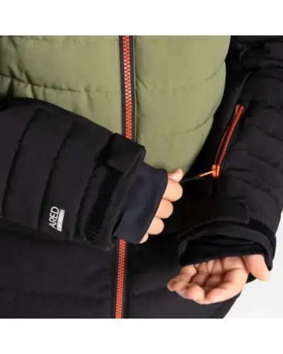Gyerek síkabát 30000 vízálló és lélegző anyag, Anyag: újrahasznosított, vízálló és lélegző stretch anyag (ARED 30/30), Felületkezelés: vízlepergető bevonat, PFC, PFOA, PFOS mentes\", Varratok: kritikus helyeken szigetelt varratok, Kialakítás: trendi párnázott sziluett, Szigetelés: újrahasznosított, magas hőmegtartó töltet, \"Sífunkciók: síbérlet zseb, rögzített hófogó szoknya\", \"Mandzsetta: belső rugalmas mandzsetták, állítható mandzsetták\", Szegély: állítható rugalmas szegély (7 éves kortól), \"Tárolás: két alsó cipzáras zseb, belső hálós tároló zseb\", Bélés: újrahasznosított poliészter bélés hátpanellel a plusz melegségért, Biztonság: fényvisszaverő részletek, Ez a dzseki ideális választás síelőknek és téli sportok kedvelőinek. Az ARED 30/30 anyag biztosítja a maximális vízállóságot és légáteresztést, míg a kritikus helyeken szigetelt varratok és a vízlepergető bevonat garantálják a szárazságot. A párnázott sziluett és az újrahasznosított töltet melegséget és stílust biztosít. A síeléshez szükséges funkciókkal, kényelmes illeszkedéssel és fényvisszaverő részletekkel ez a dzseki minden igényt kielégít.\"