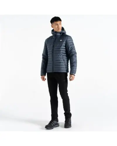 Férfi steppelt kabát, Újrahasznosított nylon/poliészter keverék anyag, Tartós vízlepergető felület, steppelt anyag, Újrahasznosított, magas hőmérsékletet tartó töltet – ILoft Ecofill, fix kapucni, Belső bordás mandzsetta, 2 x alsó cipzáras zseb, Állítható szegély