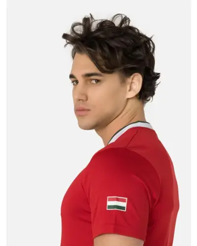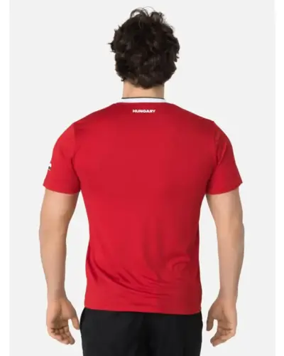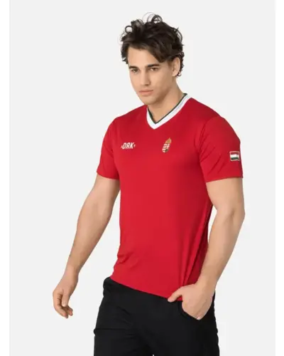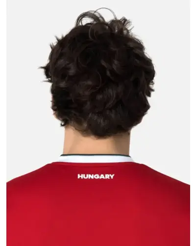 Stílusos és letisztult megjelenésû V-nyakú szurkolói mez 100% poliészter anyagból. Könnyen száradó, légáteresztő anyagának köszönhetően rendkívül kényelmes viseletet biztosít. Mellrészén elegáns címer és márkajelzés, ujján zászló, hátul diszkrét HUNGARY felirat kapott helyet.