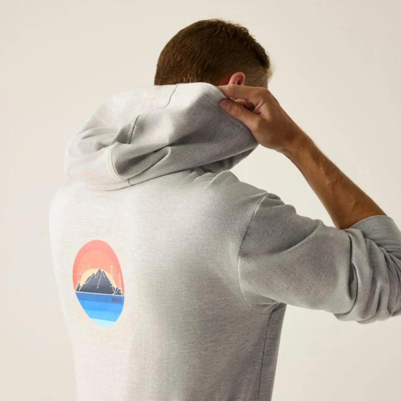 Férfi kapucnis pulóver, Prémium férfi kapucnis pulóver – bolyhozott belső, vintage hatás, 250 g/m?, Ez a férfi kapucnis pulóver 60% pamut / 40% poliészter összetételû, 250 g/m? súlyú, belül bolyhozott anyagból készült. A garment washed eljárás puhább tapintást és enyhén vintage megjelenést biztosít. A jersey béléses kapucni húzózsinórral, valamint a bordázott részletek kényelmes illeszkedést és tartósságot garantálnak. Az elülső és hátsó grafikai nyomat karakteres, sportos megjelenést ad., Főbb jellemzők:, 60% pamut / 40% poliészter bolyhozott belső anyag, 250 g/m?, Garment washed kezelés a puhább tapintásért és vintage hatásért, Jersey béléses kapucni húzózsinórral, Bordázott betét a nyakkivágás elején, Elülső kenguruzseb, Grafikai nyomat elöl, Grafikai nyomat hátul, Bordázott mandzsetta és alsó szegély, Ajánlott: Férfi kapucnis pulóverként ideális mindennapi viselethez, utazáshoz, kiránduláshoz és szabadidős programokhoz. Kiváló választás hûvösebb időben, amikor fontos a komfort, a melegség és a karakteres megjelenés., Fenntarthatóság: A pamut és poliészter kevertszálas anyag tartós és jól formatartó, így hosszabb élettartamot biztosít. A minőségi kivitel csökkenti a gyakori ruhacsere szükségességét, mérsékelve a környezeti terhelést.