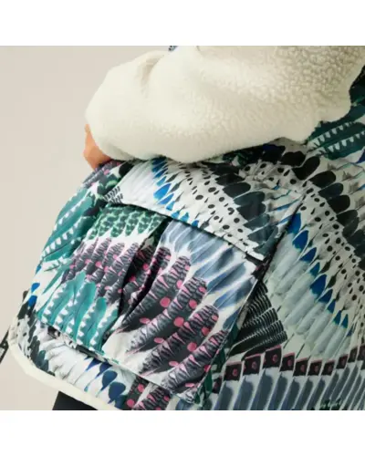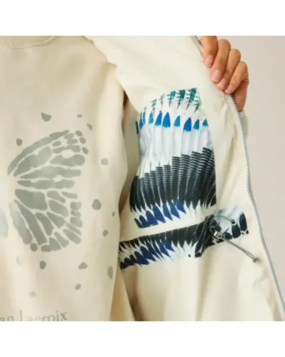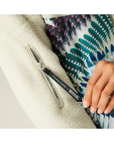 Női hybrid felső, Anyag: 100% poliészter borg polár, Panelek: 100% poliészter szőtt panelek a testen és az alsó ujj részein, Bélés: Közepes súlyú, pehelymentes, prémium újrahasznosított szintetikus bélés, Zsebek: 2 cipzáras zseb az ujjakon, 2 alsó foltzseb, Fenntarthatóság: Újrahasznosított anyagokból készült, Ez a kabát puha borg polár anyagból készült, szőtt panelekkel a tartósság érdekében. Meleg szintetikus bélés biztosít kényelmet, míg a cipzáras zsebek praktikus tárolási lehetőségeket kínálnak. Fenntartható és stílusos választás, amelyet a Christian Lacroix mûvészi dizájnja tesz egyedivé.