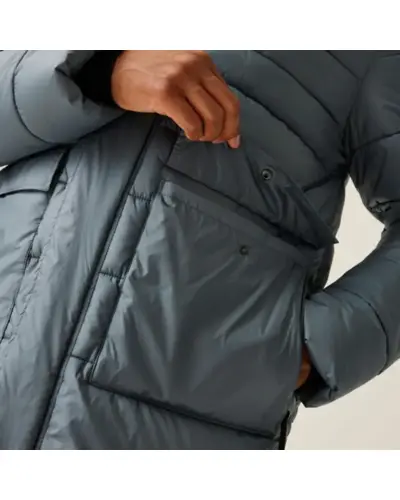 Férfi hosszú télikabát, Újrahasznosított 100% poliészter anyag, Tartós vízlepergető bevonat, Nehéz súlyú, pehelymentes, prémium minőségû újrahasznosított szintetikus bélés, Christian Lacroix által tervezett nyomott bélés, Patentok az alsó oldalvarrásoknál a mozgás megkönnyítésére, Belső cipzáras biztonsági zseb, Beépített kapucni állítókkal, CLR márkajelzés a kapucnin, CLR márkajelzésû gumijelvény a felső karon, Viharfedél, 2 alsó foltzseb cipzáras kézmelegítővel, Belső Lycra mandzsetták, Laza fazon, Ez a kabát a divatos és praktikus ruhadarabok tökéletes egyvelege, amelyet Christian Lacroix dizájner közremûködésével hoztak létre. Az újrahasznosított poliészter anyag tartós vízlepergető bevonattal rendelkezik, amely megvédi a nedvességtől, míg a nehéz súlyú, pehelymentes szintetikus bélés kiváló hőszigetelést biztosít. A kabát belső bélése Christian Lacroix nyomott dizájnjával stílusos és egyedi megjelenést kölcsönöz., A kabát funkcionalitását növeli a beépített kapucni állítókkal, a viharfedél, valamint a patentok az alsó oldalvarrásoknál, amelyek megkönnyítik a mozgást. A praktikus belső cipzáras biztonsági zseb és az alsó foltzsebek cipzáras kézmelegítőkkel további kényelmet és tárolási lehetőséget biztosítanak. A belső Lycra mandzsetták melegen tartják a csuklókat, míg a lazább fazon kényelmes és modern megjelenést biztosít. A kabátot újrahasznosított anyagokból készítették, így nemcsak stílusos, hanem fenntartható választás is.
