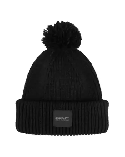 Férfi kötött sapka, Anyag: 100% akril kötött anyag, amely meleg, puha és kényelmes viseletet biztosít hideg időjárás esetén., Felhajtható szegély: Rögzített felhajtás (fixed turn up) a sapka alsó részén, amely extra meleget ad a homloknak és a füleknek, valamint stílusos megjelenést kölcsönöz., Díszítés: Kötött pompom a sapka tetején, amely játékos és divatos elemet ad hozzá.