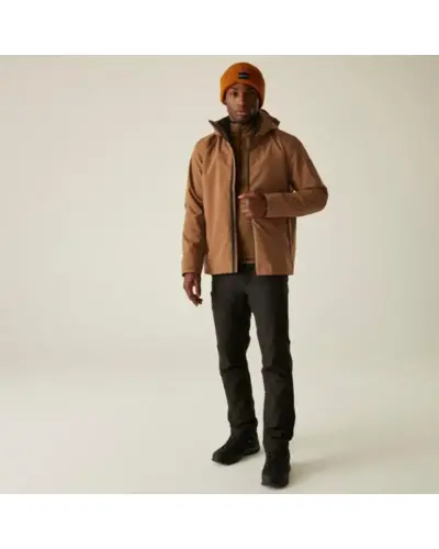 Férfi 3in1 kabát 15.000 mm, Ez a sokoldalú, 3 az 1-ben technikai kabát ideális választás egész éves, aktív szabadtéri használatra legyen szó túrázásról, hétvégi kiruccanásról vagy városi közlekedésről változékony időjárásban., Külső réteg:, Isotex 15000 4 irányban nyúló stretch szövet (100% poliészter, 165 g/m?) 15 000 mm vízállóság és 15 000 g/m?/24h légáteresztés a hatékony víz- és szélvédelemért., Tartós vízlepergető (DWR) bevonat, teljesen tapasztott varrások, és vízelvezető csatornával ellátott elülső cipzár biztosítják a teljes időjárás elleni védelmet., A kapucni állítható, a formázott ujjak és az állítható mandzsetta és alsó szegély pedig a kényelmet és mozgásszabadságot szolgálják., 2 cipzáras alsó zseb és belső biztonsági zseb segíti a praktikus tárolást., Belső réteg:, 170 g/m?-es mikro polár (100% poliészter) meleg, légáteresztő és kényelmes középrétegként vagy önálló kabátként is hordható., Két alsó zseb, valamint rugalmas mandzsetták és gallérszegély biztosítják a jó illeszkedést., Készült újrahasznosított anyagból, így környezettudatos választás is., ?? A két réteg külön is viselhető változatos időjáráshoz és eltérő hőmérséklethez igazodva., Fenntartható megoldás újrahasznosított belső anyaghasználattal., Időtálló funkcionalitás, megbízható védelem és kényelem egyetlen kabátban.