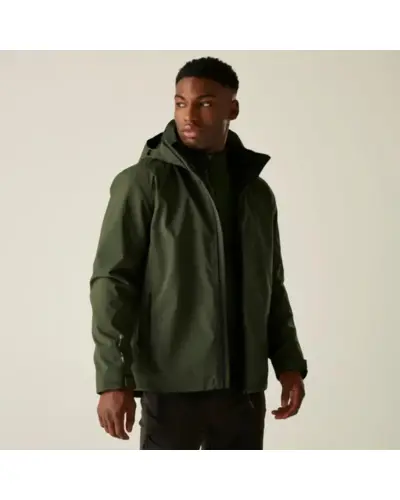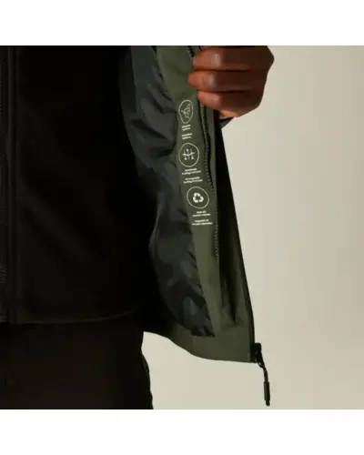 Férfi 3in1 kabát 15.000 mm, Ez a sokoldalú, 3 az 1-ben technikai kabát ideális választás egész éves, aktív szabadtéri használatra – legyen szó túrázásról, hétvégi kiruccanásról vagy városi közlekedésről változékony időjárásban., Külső réteg:, Isotex 15000 4 irányban nyúló stretch szövet (100% poliészter, 165 g/m?) – 15 000 mm vízállóság és 15 000 g/m?/24h légáteresztés a hatékony víz- és szélvédelemért., Tartós vízlepergető (DWR) bevonat, teljesen tapasztott varrások, és vízelvezető csatornával ellátott elülső cipzár biztosítják a teljes időjárás elleni védelmet., A kapucni állítható, a formázott ujjak és az állítható mandzsetta és alsó szegély pedig a kényelmet és mozgásszabadságot szolgálják., 2 cipzáras alsó zseb és belső biztonsági zseb segíti a praktikus tárolást., Belső réteg:, 170 g/m?-es mikro polár (100% poliészter) – meleg, légáteresztő és kényelmes középrétegként vagy önálló kabátként is hordható., Két alsó zseb, valamint rugalmas mandzsetták és gallérszegély biztosítják a jó illeszkedést., Készült újrahasznosított anyagból, így környezettudatos választás is., ?? A két réteg külön is viselhető – változatos időjáráshoz és eltérő hőmérséklethez igazodva., Fenntartható megoldás – újrahasznosított belső anyaghasználattal., Időtálló funkcionalitás, megbízható védelem és kényelem egyetlen kabátban.