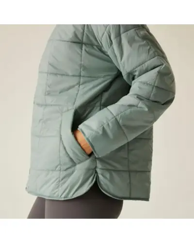 Női vékony steppelt kabát, Könnyû 20d poliamid szövet  37gsm, Tartós vízlepergető bevonat, Újrahasznosított Warmloft down-touch, vízlepergető szigetelés, (A \"\"Warmloft down-touch\"\" azt jelenti, hogy a szigetelés meleg, tollhatású tapintású, könnyû és kényelmes viseletet biztosít, miközben vízlepergető tulajdonságokkal rendelkezik.)\", Könnyû töltet  140gsm, 100% poliészter taft bélés, csíkos nyomattal, Belső cipzáras biztonsági zseb, Lehulló váll kialakítás, 2 alsó welt zseb, Ívelt alsó él, Újrahasznosított tartalommal készült, Ideális választás aktív életmódhoz és extrém időjárási körülmények között, ahol a védelem, a kényelem és a fenntarthatóság egyaránt fontos szempont.\"