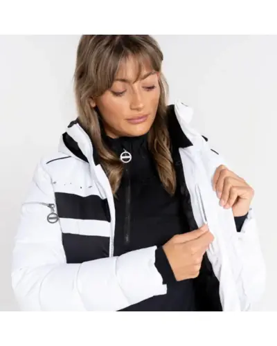 Női síkabát 20.000 mm, Vízálló és lélegző Ared V02, 10000 szatén sztreccs anyag, Kristály díszítés a mellkason és a háton, Tartós vízlepergető felület, Újrahasznosított anyagból készült meleg bélésanyag, Komplett sífunkciók (beleértve a síbérlet zsebet, és levehető hószoknyát), Állítható kapucni, Mûszőrmével bélelt gallér, Fém hatású középső elülső cipzár belső cipzárral és állvédővel, Fém logo és kristályokkal díszített cipzárhúzók, Különlegesen szabott ujjak biztosítják a teljes mozgásszabadságot , 1 karon lévő cipzáras zseb, Elasztikus és steppelt oldalelemek, Belső sztreccs mandzsetta, 2 x alsó zseb fém hatású cipzárral, Újrahasznosított poliészter bélésből készült, hátsó panel az extra melegért, 1 db belső cipzáras zseb a fejhallgató-csatlakozáshoz