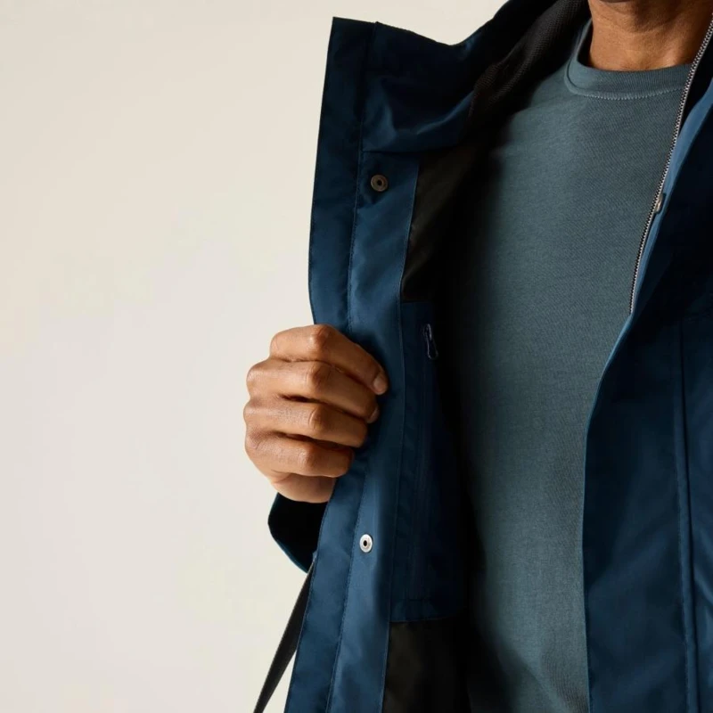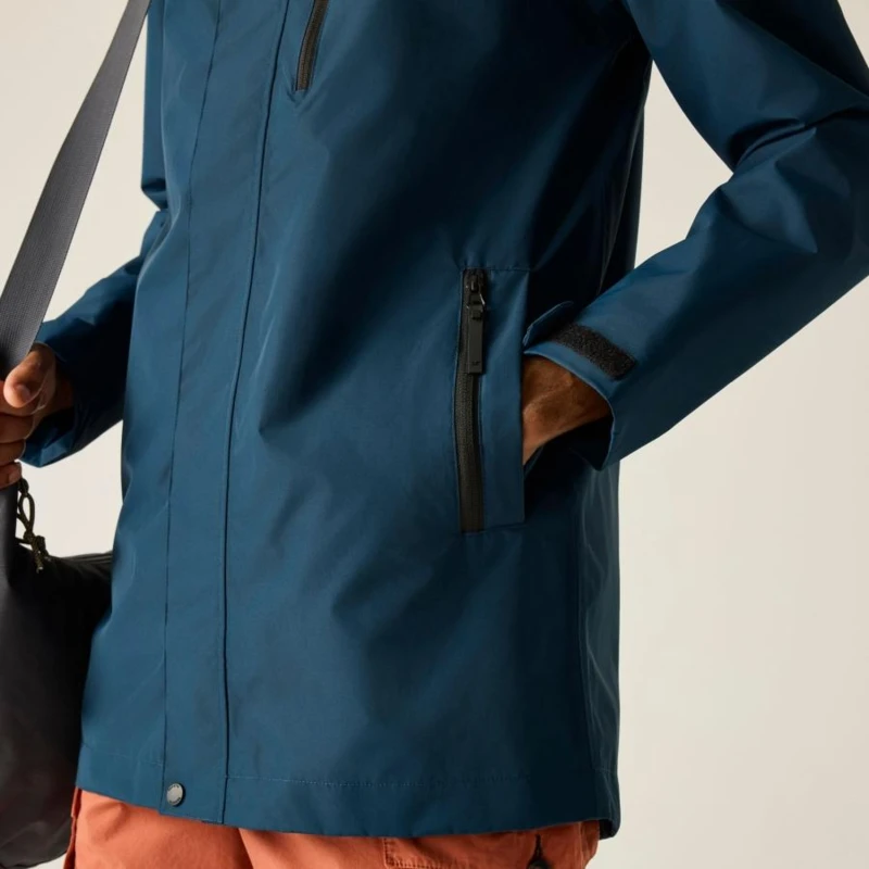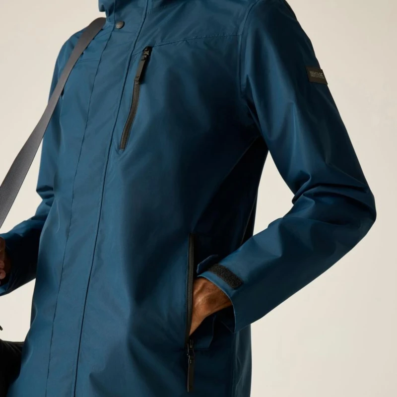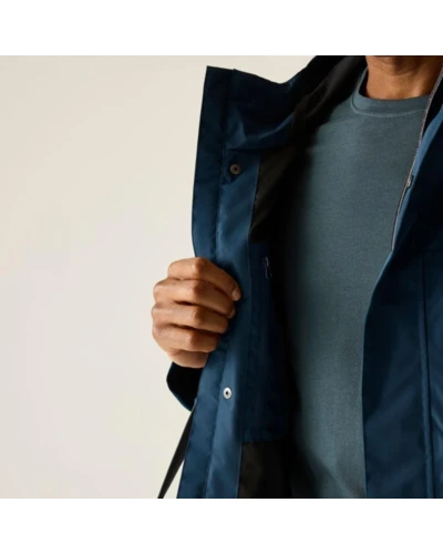 Férfi esőkabát 15000 mm vízálló, Prémium férfi vízálló technikai kabát ISOTEX 15000 membrán, 15 000 g/m?/24h légáteresztés, viharvédett kialakítás, Ez a férfi technikai kabát vízálló és légáteresztő ISOTEX 15000 membránnal készült, 100% poliészter anyagból, 110 g/m? súlyban. A 15 000 g/m?/24 óra légáteresztési teljesítmény biztosítja a megfelelő komfortot aktív használat során. A tartós vízlepergető bevonat és a ragasztott varratok teljes körû vízálló védelmet nyújtanak, míg az osztott hálós és dombornyomott taft bélés fokozza a kényelmet és a szellőzést. A viharfedő patentos záródással extra védelmet biztosít kedvezőtlen időjárási körülmények között., Főbb jellemzők:, Vízálló, légáteresztő ISOTEX 15000 100% poliészter anyag, 110 g/m?, Légáteresztési érték: 15 000 g/m?/24 óra, Tartós vízlepergető bevonat, Ragasztott varratok a teljes vízálló védelemért, Osztott bélés: 100% poliészter háló és 100% poliészter dombornyomott taft, Belső biztonsági zseb, Beépített kapucni elülső és rejtett hátsó állítókkal, Viharfedő patentos záródással, 1 cipzáras mellzseb, 2 alsó paszpólos zseb dupla cipzáras bejárattal, Állítható pántos mandzsetta, Ajánlott: Férfi vízálló túrakabátként ideális túrázáshoz, kiránduláshoz és mindennapi viselethez esős, szeles időjárási körülmények között. Kiváló választás, ha fontos a megbízható vízállóság és a praktikus zsebkialakítás., Fenntarthatóság: A tartós poliészter alapanyag hosszú élettartamot biztosít, csökkentve a gyakori ruhacsere szükségességét. A strapabíró konstrukció több szezonon át megbízható teljesítményt nyújt.