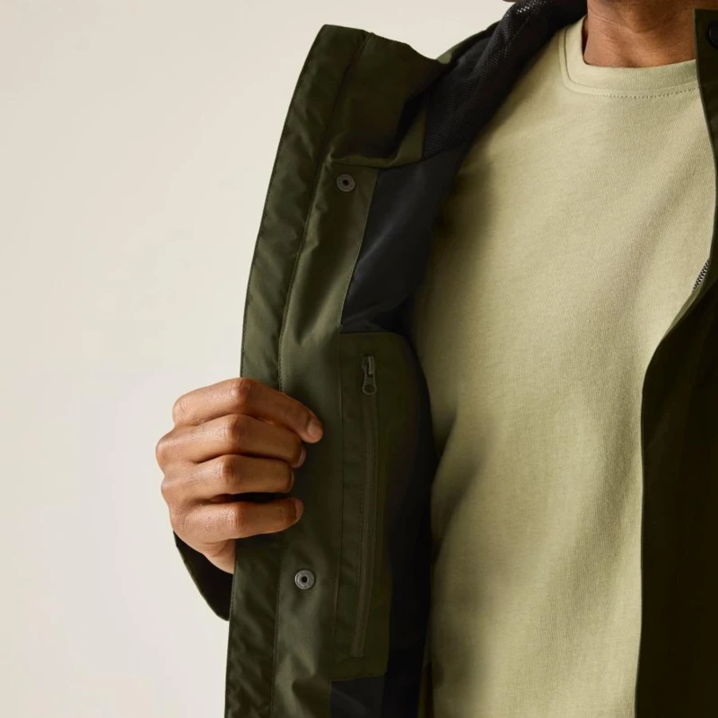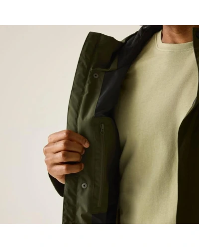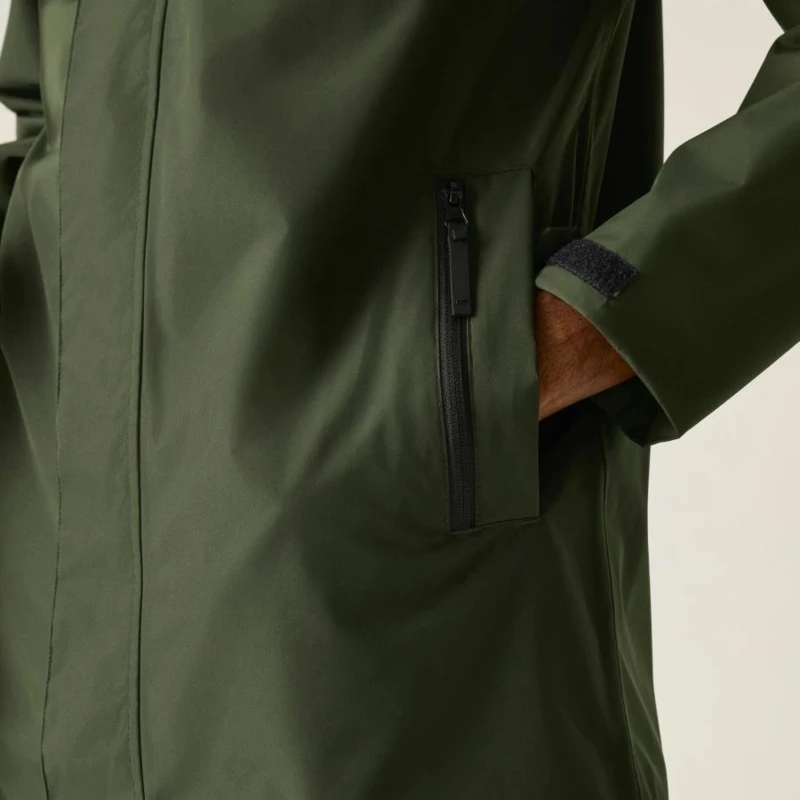 Férfi esőkabát 15000 mm vízálló, Prémium férfi vízálló technikai kabát ISOTEX 15000 membrán, 15 000 g/m?/24h légáteresztés, viharvédett kialakítás, Ez a férfi technikai kabát vízálló és légáteresztő ISOTEX 15000 membránnal készült, 100% poliészter anyagból, 110 g/m? súlyban. A 15 000 g/m?/24 óra légáteresztési teljesítmény biztosítja a megfelelő komfortot aktív használat során. A tartós vízlepergető bevonat és a ragasztott varratok teljes körû vízálló védelmet nyújtanak, míg az osztott hálós és dombornyomott taft bélés fokozza a kényelmet és a szellőzést. A viharfedő patentos záródással extra védelmet biztosít kedvezőtlen időjárási körülmények között., Főbb jellemzők:, Vízálló, légáteresztő ISOTEX 15000 100% poliészter anyag, 110 g/m?, Légáteresztési érték: 15 000 g/m?/24 óra, Tartós vízlepergető bevonat, Ragasztott varratok a teljes vízálló védelemért, Osztott bélés: 100% poliészter háló és 100% poliészter dombornyomott taft, Belső biztonsági zseb, Beépített kapucni elülső és rejtett hátsó állítókkal, Viharfedő patentos záródással, 1 cipzáras mellzseb, 2 alsó paszpólos zseb dupla cipzáras bejárattal, Állítható pántos mandzsetta, Ajánlott: Férfi vízálló túrakabátként ideális túrázáshoz, kiránduláshoz és mindennapi viselethez esős, szeles időjárási körülmények között. Kiváló választás, ha fontos a megbízható vízállóság és a praktikus zsebkialakítás., Fenntarthatóság: A tartós poliészter alapanyag hosszú élettartamot biztosít, csökkentve a gyakori ruhacsere szükségességét. A strapabíró konstrukció több szezonon át megbízható teljesítményt nyújt.