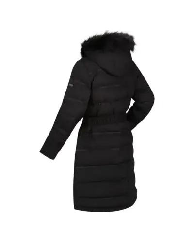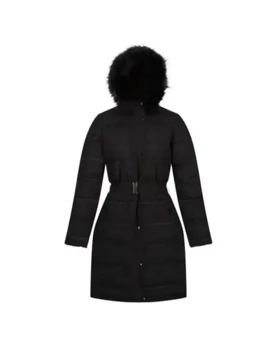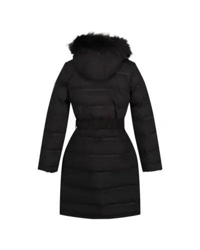 női télikabát , 100% poliészter hőtartó anyag, Tartós vízlepergető felület, Tollmentes – prémium minőségû újrahasznosított szintetikus pehely szigetelés, Újrahasznosított töltet körülbelül 30 mûanyag palackból (500 ml-es méretû), Nehézsúlyú töltet, 100% poliészter taft bélés, nem levehtő, húzózsinrórral állítható kapucni, levehtő extra mûszőrmével, Belső cipzárvédő, Kétirányban nyitható középső cipzár, Csatos deréköv , Felhajtható mandzsetta luxus szőrme díszítéssel, 2 cipzáras alsó zseb