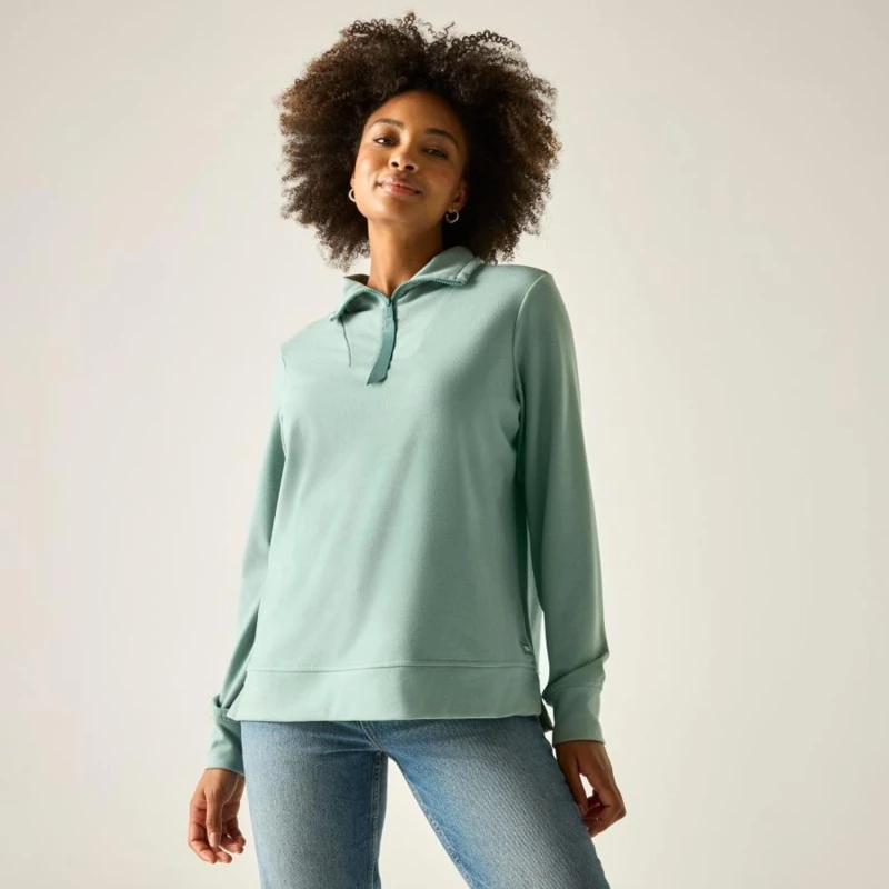 Női polár felső, Női csíkos, puha tapintású polár felső könnyed kényelem és stílus, Ez a két tónusú, csíkos mintájú, puha tapintású polár felső (260 g/m?) egyszerre biztosít melegséget és könnyed viselési élményt. A félcipzáras kialakítás praktikus, a lezser oldalhasítékok pedig még szabadabb mozgást engednek., Anyag: 90% poliészter / 10% elasztán, puha tapintású, két tónusú csíkos polár 260 g/m?, Szuper puha felület a maximális kényelemért, Félcipzáras kialakítás, Oldalhasítékok a szabad mozgásért, Újrahasznosított anyagból készült környezettudatos választás, Ajánlott: könnyû réteges öltözködéshez, hûvösebb napokra, városi és szabadtéri viselethez, Puha, meleg és fenntartható kedvenc darab a mindennapokra