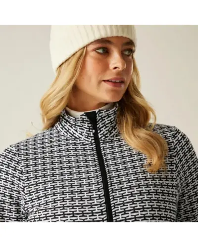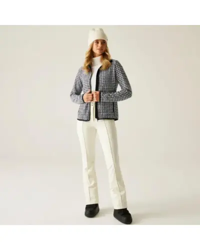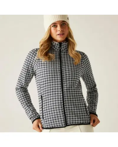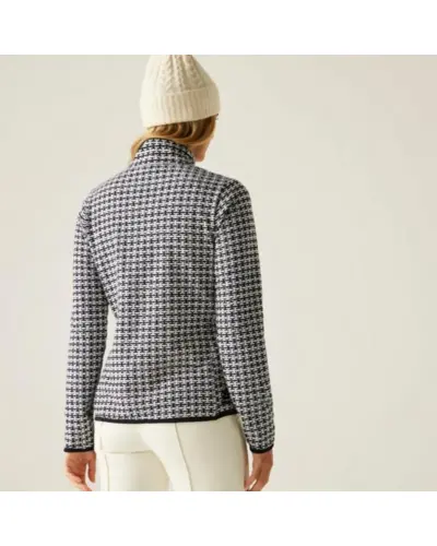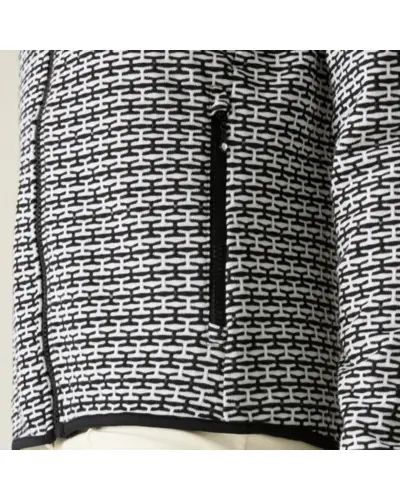 Női pulóver, Prémium női kabát újrahasznosított poliészter jacquard anyag, Swarovski kristályos részletekkel, Ez az elegáns női kabát újrahasznosított poliészter jacquard anyagból készült, amely tartós és stílusos megjelenést biztosít. A gallér és a cipzárhúzók Swarovski kristályos díszítése kifinomult, luxus hatást kölcsönöz, így tökéletes választás mindennapi viselethez és elegáns alkalmakra egyaránt., Újrahasznosított poliészter jacquard szövet a tartósságért és stílusért, Swarovski kristályos díszítés a galléron és cipzárhúzókon, Ajánlott: prémium női kabát városi viselethez, elegáns megjelenéshez és átmeneti időjáráshoz.