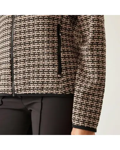 Női pulóver, Prémium női kabát újrahasznosított poliészter jacquard anyag, Swarovski kristályos részletekkel, Ez az elegáns női kabát újrahasznosított poliészter jacquard anyagból készült, amely tartós és stílusos megjelenést biztosít. A gallér és a cipzárhúzók Swarovski kristályos díszítése kifinomult, luxus hatást kölcsönöz, így tökéletes választás mindennapi viselethez és elegáns alkalmakra egyaránt., Újrahasznosított poliészter jacquard szövet a tartósságért és stílusért, Swarovski kristályos díszítés a galléron és cipzárhúzókon, Ajánlott: prémium női kabát városi viselethez, elegáns megjelenéshez és átmeneti időjáráshoz.