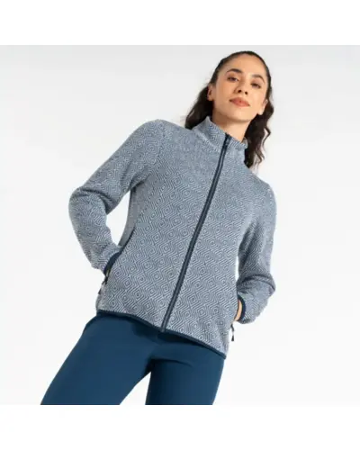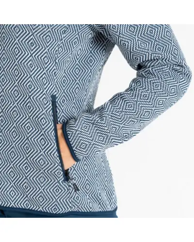 Női pulóver, Anyag: Újrahasznosított poliészter Jacquard kötött szövet, Fém hatású középső cipzár belső cipzárvédelemmel és állvédővel, Mandzsetta és szegély: Rugalmas szegéllyel ellátva, Zsebek: 2 alsó zseb fém hatású cipzárral, Ez a pulóver újrahasznosított poliészter Jacquard kötött anyagból készült, amely kényelmes és tartós viseletet biztosít. A fém hatású középső cipzár belső cipzárvédelemmel és állvédővel rendelkezik a maximális kényelem érdekében. A rugalmas mandzsetta és szegély biztosítja a tökéletes illeszkedést, míg a két alsó zseb fém hatású cipzárral praktikus tárolási lehetőséget kínál.