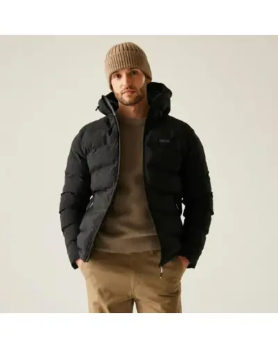 Férfi hybrid steppelt kabát, Könnyû és meleg hibrid kabát újrahasznosított anyagokból, Anyag és technológia:, Újrahasznosított poliészter ripstop és Ilus Stretch keveréke tartós és rugalmas kialakítás, Recycled Iloft Air szigetelés (80 g/m?) ultrakönnyû, jól kompresszálható, mégis meleg, Szintetikus, vegyszermentes antibakteriális szagkontroll-kezelés, Kényelem és funkcionalitás:, Beépített kapucni rugalmas szegéllyel a jobb illeszkedésért, 2 cipzáras alsó zseb a biztonságos tárolás érdekében, Ez a könnyû és sokoldalú hibrid kabát ideális aktív mozgáshoz és hûvösebb időjáráshoz. Melegen tart, rugalmas anyaga pedig biztosítja a szabad mozgást, miközben a vegyszermentes antibakteriális kezelés frissen tartja. Újrahasznosított anyagokból készült, így környezettudatos választás is egyben.