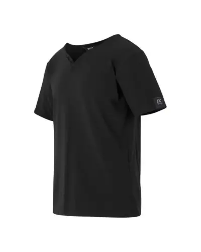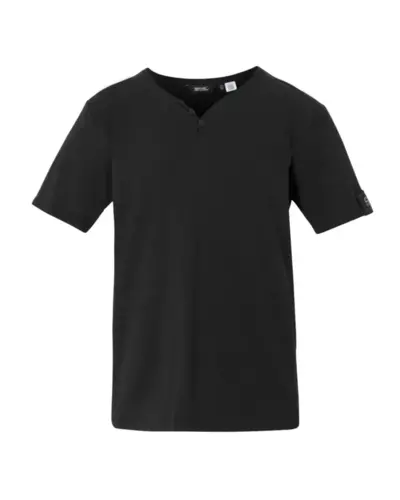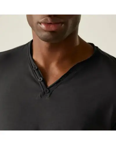 Férfi pamut póló, Anyag:, 160 g/m? single jersey – 95% BCI pamut / 5% elasztán, Tulajdonságok:, V-nyakú kialakítás – modern és elegáns megjelenés, Grandad gombos gallér – klasszikus és stílusos részlet, Mosott kivitel a puhább tapintás érdekében – extra kényelem egész nap, UV-védelem (UPF) – fokozott védelem a napsugárzás ellen, Ideális választás mindennapi viselethez és könnyed szabadtéri tevékenységekhez.