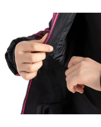 Gyerek síkabát 10.000 mm, Újrahasznosított vízálló és légáteresztő szövet Ared 10 000, Tartós vízlepergető felület, Kritikusan helyen elhelyezkedő varrásnál ragasztott varratok a vízálló védelem érdekében, Újrahasznosított, magas hőmérsékletet tartó töltet, Komplett sífunkciók (beleértve a síbérlet zsebet és, fix hószoknya), Levehető kapucni levehető mûszőrme szegéllyel, 2 x alsó cipzáras zseb, Meleg belső mandzsetta, Újrahasznosított poliészter bélés , Fényvisszaverő részletek a jobb láthatóság érdekében