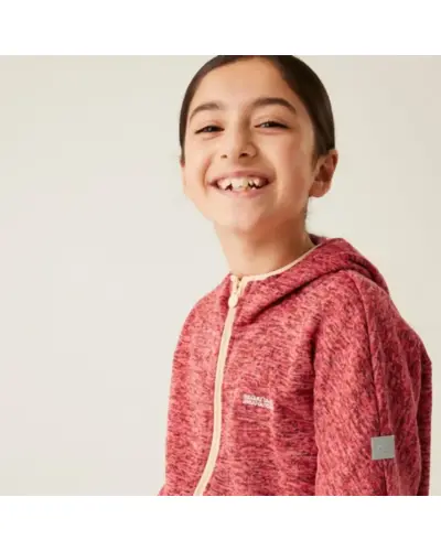 Gyerek extol pulóver, Anyag: 240g/m? súlyú, újrahasznosított 85% poliészter, 13% viszkóz és 2% elasztán keverékû polár anyag, amely kényelmes és meleg viseletet biztosít, miközben modern, marl kötött hatású megjelenést nyújt., Rugalmas betétek: Extol Stretch panel betétek 90% poliészter és 10% elasztán anyagból, amelyek nagyobb rugalmasságot és mozgásszabadságot biztosítanak., Kapucni: Beépített kapucni rugalmas szegéllyel a nyílás körül, amely jobb illeszkedést és védelmet biztosít., Rugalmas szegélyek: Rugalmas szegélyek a kapucni nyílásánál, a mandzsettákon és a szegélynél, amelyek biztosítják a kabát szorosabb illeszkedését és kényelmét., Cipzárvédő: Cipzárvédő a cipzár mentén, amely növeli a kényelmet és megakadályozza a hideg levegő behatolását., Zsebek: Két cipzáras alsó zseb a biztonságos tárolás érdekében., Biztonsági elemek: Fényvisszaverő szegélyek a kabáton, amelyek növelik a láthatóságot és biztonságot nyújtanak gyenge fényviszonyok között., Nyomtatott névcímke: Nyomtatott névcímke, amely elérhető 8 éves korig, és segíti a kabát azonosítását.