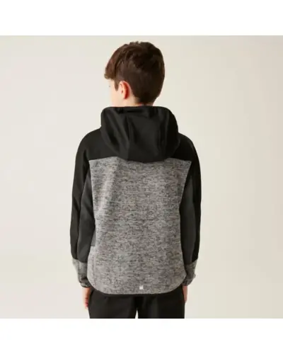 Gyerek extol pulóver, Anyag: 240g/m? súlyú, újrahasznosított 85% poliészter, 13% viszkóz és 2% elasztán keverékû polár anyag, amely kényelmes és meleg viseletet biztosít, miközben modern, marl kötött hatású megjelenést nyújt., Rugalmas betétek: Extol Stretch panel betétek 90% poliészter és 10% elasztán anyagból, amelyek nagyobb rugalmasságot és mozgásszabadságot biztosítanak., Kapucni: Beépített kapucni rugalmas szegéllyel a nyílás körül, amely jobb illeszkedést és védelmet biztosít., Rugalmas szegélyek: Rugalmas szegélyek a kapucni nyílásánál, a mandzsettákon és a szegélynél, amelyek biztosítják a kabát szorosabb illeszkedését és kényelmét., Cipzárvédő: Cipzárvédő a cipzár mentén, amely növeli a kényelmet és megakadályozza a hideg levegő behatolását., Zsebek: Két cipzáras alsó zseb a biztonságos tárolás érdekében., Biztonsági elemek: Fényvisszaverő szegélyek a kabáton, amelyek növelik a láthatóságot és biztonságot nyújtanak gyenge fényviszonyok között., Nyomtatott névcímke: Nyomtatott névcímke, amely elérhető 8 éves korig, és segíti a kabát azonosítását.