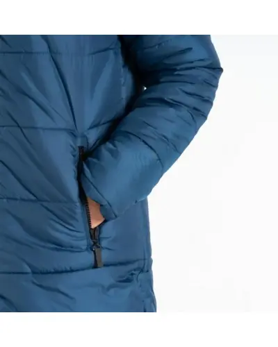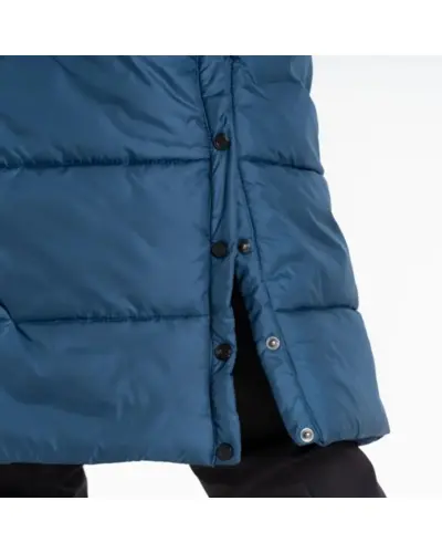 Női télikabát 10000 vízálló, Anyag: Újrahasznosított poliészter fényes szövet, Felületkezelés: Víztaszító, Környezetbarát: PFC, PFOA, PFOS mentes anyag, Töltet: Újrahasznosított, magas melegséget biztosító töltet (iLoft Ecofill), Design: Funkcionális divat, párnázott sziluett, Kapucni: Fix (grown on) kapucni, Cipzár:, Masszív matt fekete középső cipzár, Zsebek:, 2 kézmelegítő zseb masszív matt fekete cipzárral, Szellőzés: Patentos szellőzők az alsó szegély oldalain a szabad mozgás érdekében, Mandzsetta: Belső elasztikus mandzsetta a melegebb illeszkedésért, Bélés: Újrahasznosított poliészter bélés, Ez a kabát újrahasznosított poliészter fényes anyagból készült, amely modern és elegáns megjelenést biztosít. A víztaszító felületkezelés és a PFC, PFOA, PFOS mentes anyag környezetbarát és praktikus választás. Az iLoft Ecofill újrahasznosított töltet magas melegséget biztosít, míg a párnázott sziluett és a fix kapucni stílusos és kényelmes viseletet garantálnak. A masszív matt fekete középső cipzár és a kézmelegítő zsebek masszív matt fekete cipzárai praktikusak és esztétikusak. A patentos szellőzők az alsó szegély oldalain a szabad mozgást biztosítják, míg a belső elasztikus mandzsetta extra melegséget nyújt. Az újrahasznosított poliészter bélés tovább fokozza a kabát kényelmét és fenntarthatóságát. Ez a kabát ideális választás hideg és nedves időjárási körülmények között.
