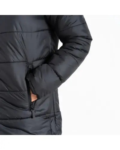 Női télikabát 10000 vízálló, Anyag: Újrahasznosított poliészter fényes szövet, Felületkezelés: Víztaszító, Környezetbarát: PFC, PFOA, PFOS mentes anyag, Töltet: Újrahasznosított, magas melegséget biztosító töltet (iLoft Ecofill), Design: Funkcionális divat, párnázott sziluett, Kapucni: Fix (grown on) kapucni, Cipzár:, Masszív matt fekete középső cipzár, Zsebek:, 2 kézmelegítő zseb masszív matt fekete cipzárral, Szellőzés: Patentos szellőzők az alsó szegély oldalain a szabad mozgás érdekében, Mandzsetta: Belső elasztikus mandzsetta a melegebb illeszkedésért, Bélés: Újrahasznosított poliészter bélés, Ez a kabát újrahasznosított poliészter fényes anyagból készült, amely modern és elegáns megjelenést biztosít. A víztaszító felületkezelés és a PFC, PFOA, PFOS mentes anyag környezetbarát és praktikus választás. Az iLoft Ecofill újrahasznosított töltet magas melegséget biztosít, míg a párnázott sziluett és a fix kapucni stílusos és kényelmes viseletet garantálnak. A masszív matt fekete középső cipzár és a kézmelegítő zsebek masszív matt fekete cipzárai praktikusak és esztétikusak. A patentos szellőzők az alsó szegély oldalain a szabad mozgást biztosítják, míg a belső elasztikus mandzsetta extra melegséget nyújt. Az újrahasznosított poliészter bélés tovább fokozza a kabát kényelmét és fenntarthatóságát. Ez a kabát ideális választás hideg és nedves időjárási körülmények között.