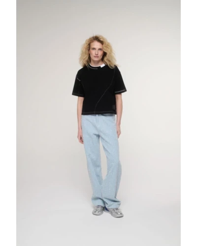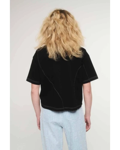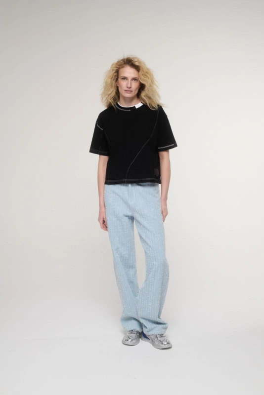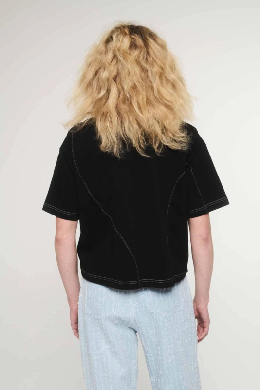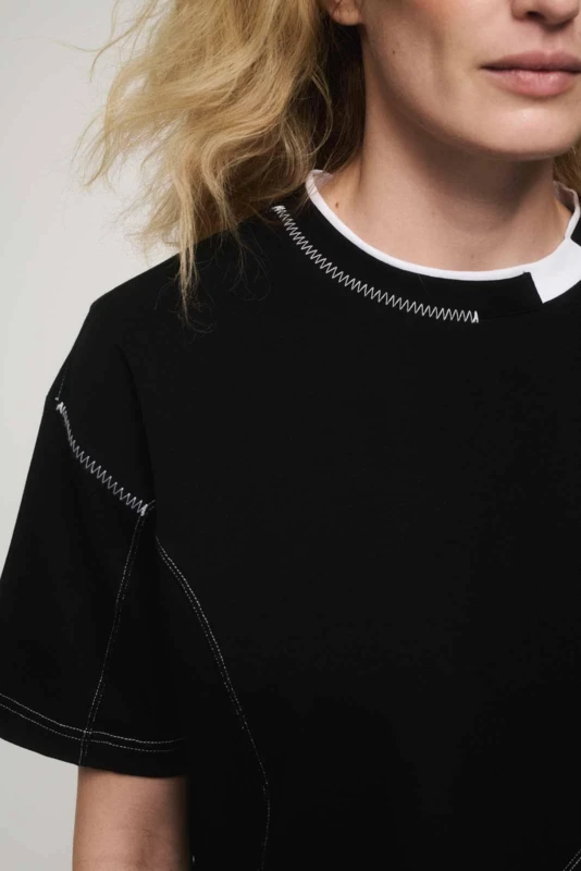A magyar tervezői crop top. - A limitált SHANNON crop top a Szegedi Kata x DRK együttmûködésében született, amiben találkozik a high-fashion és a streetwear. A vastag pamutból készült női póló egyedi szabásvonalaival és dupla nyakmegoldásával segít kitûnni a tömegből. A dekoratív dísztûzések, a PU patch-en elhelyezett tervezői logó és a szövött DORKO címke a prémium minőséget hirdetik. - Ki az a Szegedi Kata?. - Szegedi Kata a kortárs magyar divat egyik legmeghatározóbb tervezője. Saját márkáját a modern, nagyvárosi ember köré építi, akit az önkifejezés és a magabiztosság vezérel. Kollekcióiban a kísérleti szabásvonalak, az építészeti formák és a prémium anyaghasználat dominálnak. Kata munkássága nemzetközileg is elismert, ruhái rendszeresen láthatók a világ divatfővárosainak kifutóin és a legnagyobb divatlapok hasábjain. - Miért fontos nekünk a magyar tervezőkkel való együttmûködés?. - A design nem a luxusnál, hanem az egyediségnél és az emberközpontúságnál kezdődik. A Dorkónál tudatosan választjuk a magyar mûvészekkel való kollaborációt. Ezzel támogatjuk a helyi kreatív közösséget, és bizonyítjuk: szívügyünk az igazi minőség és egyediség. - Így viseld a SHANNON crop topot. - A SHANNON crop top az arányok játékáról szól. Párosítsd magas derekú, bő szárú nadrággal az optikai nyújtásért, vagy vedd fel egy oversize blézer alá a határozott, nagyvárosi sziluettért. A kontrasztok erejéről se feledkezz meg: egy robusztus talpú sneakerrel sportos, egy strukturált cargo nadrággal pedig high-fashion hatást érhetsz el.