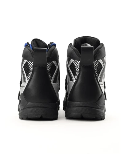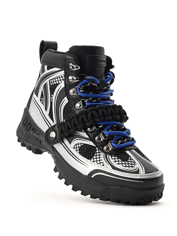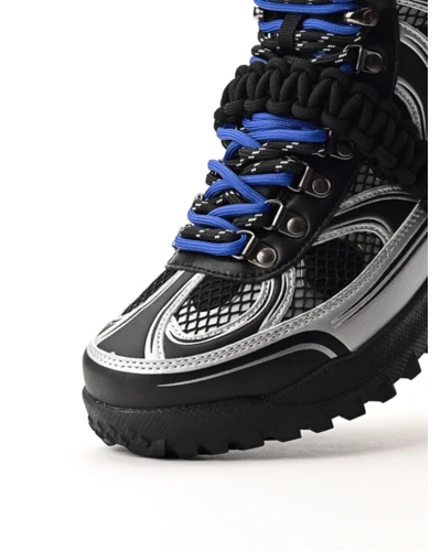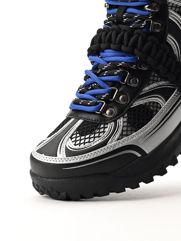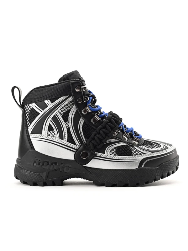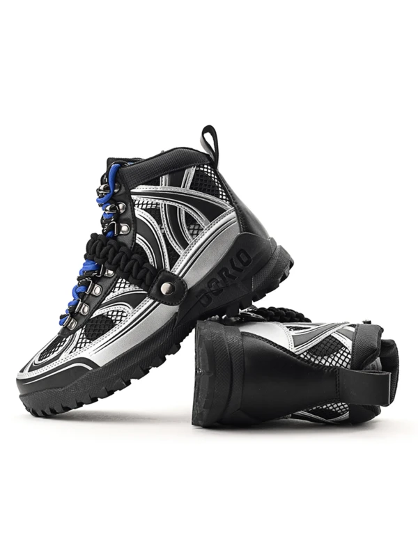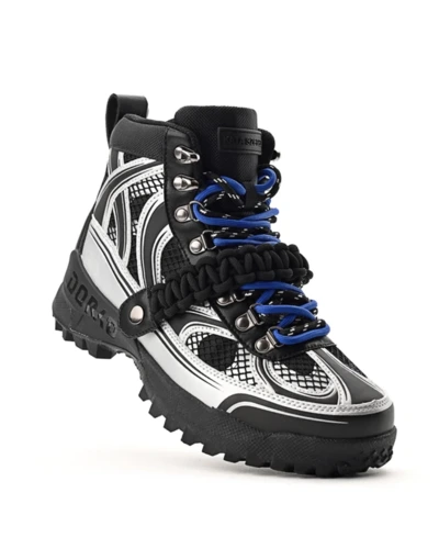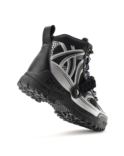 Találkozik a funkcionalitás és a divatmûvészet: a DRK legnépszerûbb téli bakancsa újragondolva Szegedi Kata karakteres stílusában. A felsőrész formavilága szabdalt, dombornyomott és printelt részletekkel díszített, amit a fémes elemek és az ízlésesen elhelyezett márkajelzés tesz igazán különlegessé. A cipő egyik leglátványosabb eleme a levehető, elasztikus makramé pánt, amely egyszerre ad karaktert és játékosságot a megjelenéshez. A dupla cipőfûzéssel fûzött kialakítás a részletek iránti figyelmet hangsúlyozza, míg az egyedi cipősdoboz design méltó módon koronázza meg ezt az exkluzív együttmûködést.