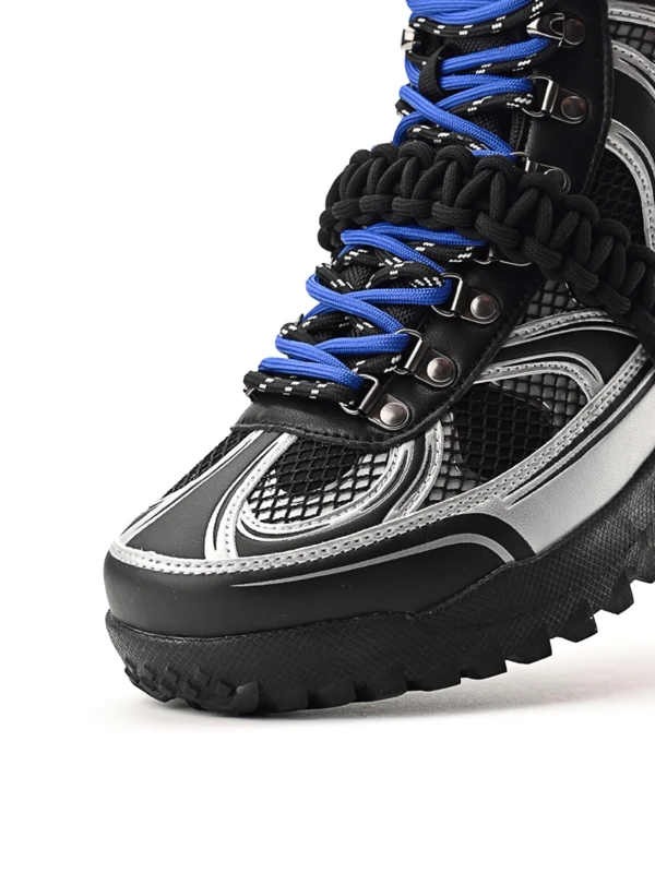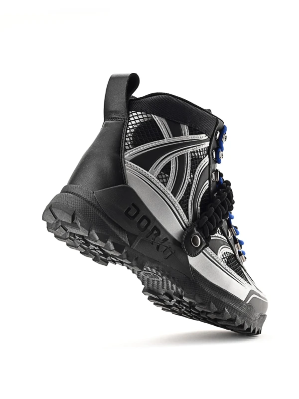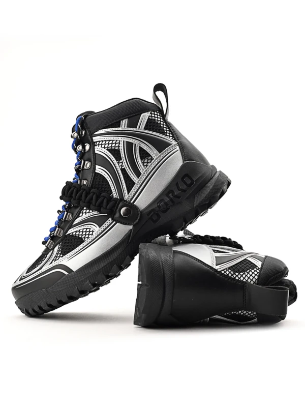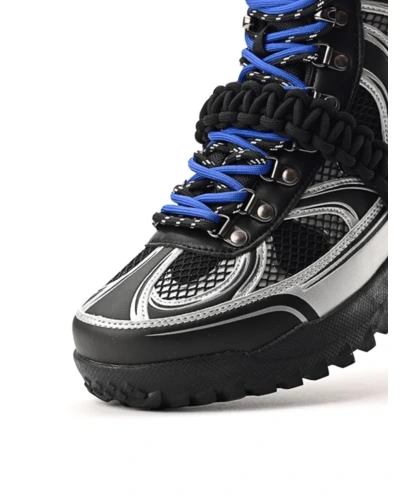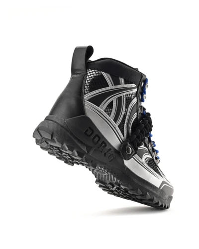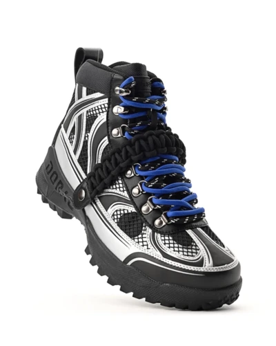 Találkozik a funkcionalitás és a divatmûvészet: a DRK legnépszerûbb téli bakancsa újragondolva Szegedi Kata karakteres stílusában. A felsőrész formavilága szabdalt, dombornyomott és printelt részletekkel díszített, amit a fémes elemek és az ízlésesen elhelyezett márkajelzés tesz igazán különlegessé. A cipő egyik leglátványosabb eleme a levehető, elasztikus makramé pánt, amely egyszerre ad karaktert és játékosságot a megjelenéshez. A dupla cipőfûzéssel fûzött kialakítás a részletek iránti figyelmet hangsúlyozza, míg az egyedi cipősdoboz design méltó módon koronázza meg ezt az exkluzív együttmûködést.