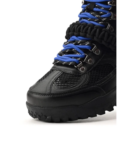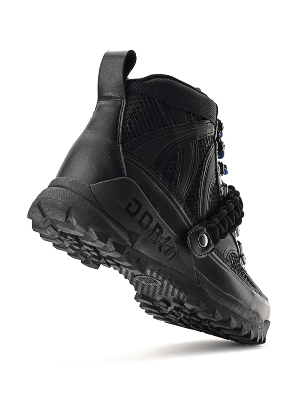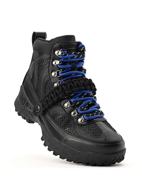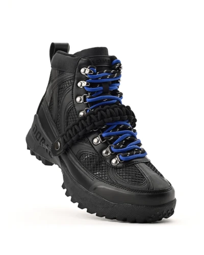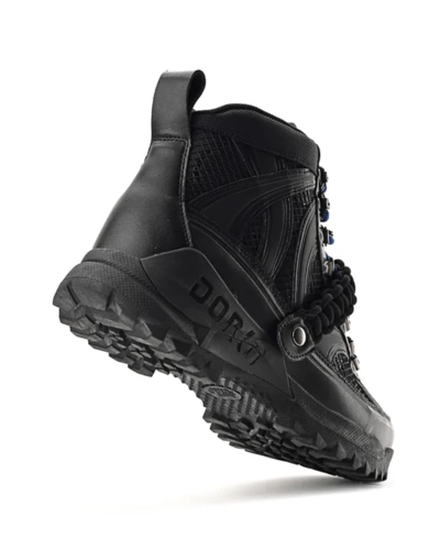 Találkozik a funkcionalitás és a divatmûvészet: a DRK legnépszerûbb téli bakancsa újragondolva Szegedi Kata karakteres stílusában. A felsőrész formavilága szabdalt, dombornyomott és printelt részletekkel díszített, amit a fémes elemek és az ízlésesen elhelyezett márkajelzés tesz igazán különlegessé. A cipő egyik leglátványosabb eleme a levehető, elasztikus makramé pánt, amely egyszerre ad karaktert és játékosságot a megjelenéshez. A dupla cipőfûzéssel fûzött kialakítás a részletek iránti figyelmet hangsúlyozza, míg az egyedi cipősdoboz design méltó módon koronázza meg ezt az exkluzív együttmûködést.
