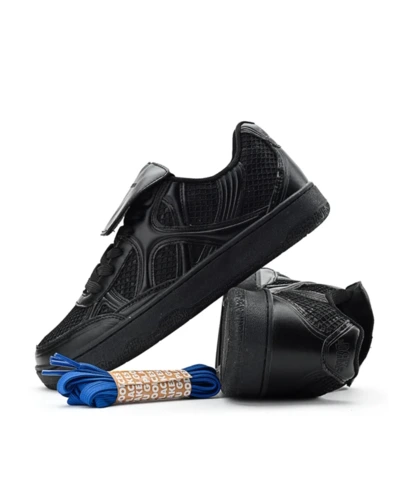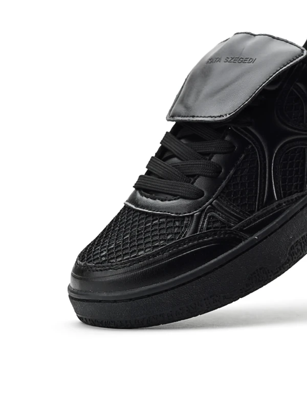 A DRK ikonikus Vibe sziluettje Szegedi Kata márkájának esztétikájával született újjá. Az újratervezett felsőrész szabdalt vonalvezetése, dombornyomott és printelt részletei különleges textúrát és vizuális rétegzettséget adnak a cipőnek. A megjelenést az ízléses, visszafogott márkajelzés teszi teljessé.A modell egyik legkarakteresebb eleme az EXTRA kialakítású nyelv, amely a cipőfûzőt teljesen eltakarja – a klasszikus focicipők világát idézve, kortárs streetwear köntösben.