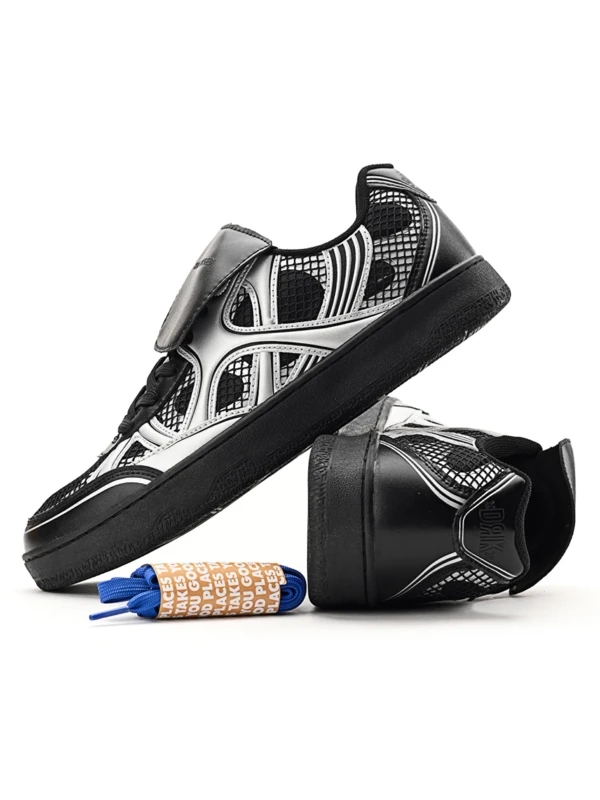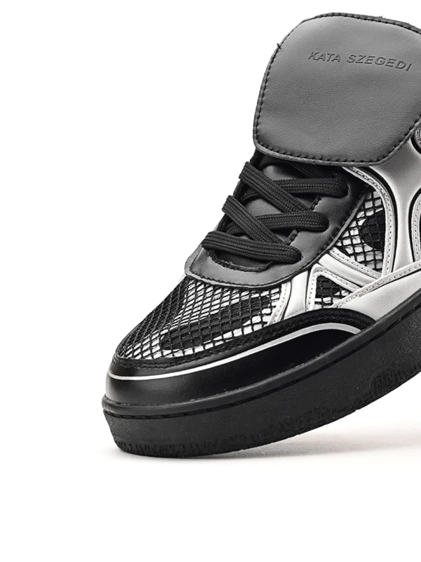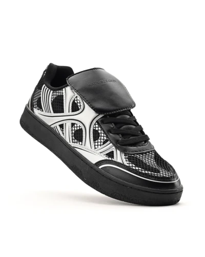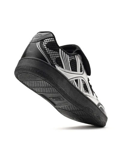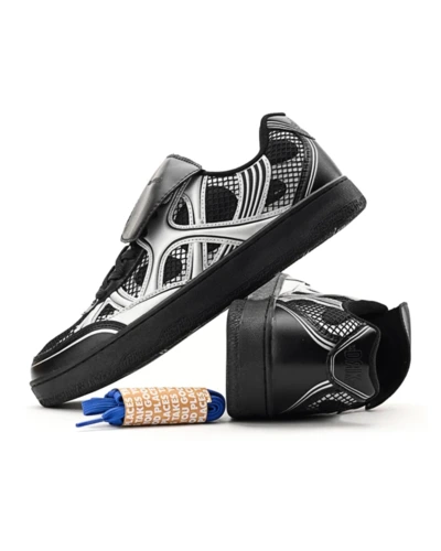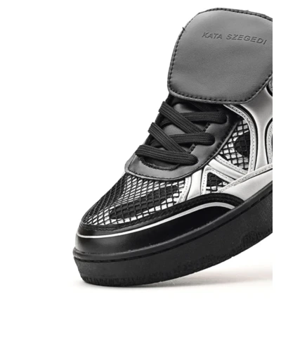 A DRK ikonikus Vibe sziluettje Szegedi Kata márkájának esztétikájával született újjá. Az újratervezett felsőrész szabdalt vonalvezetése, dombornyomott és printelt részletei különleges textúrát és vizuális rétegzettséget adnak a cipőnek. A megjelenést az ízléses, visszafogott márkajelzés teszi teljessé. A modell egyik legkarakteresebb eleme az EXTRA kialakítású nyelv, amely a cipőfûzőt teljesen eltakarja – a klasszikus focicipők világát idézve, kortárs streetwear köntösben.