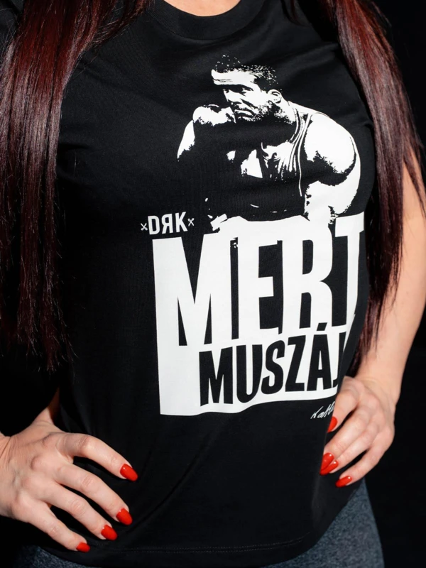 Ez a póló nem csupán egy ruhadarab, hanem tisztelgés a legendás erőemelő, Kathi Béla előtt. A mellkason elhelyezett ikonikus felirat – Mert muszáj – az ő életfilozófiáját idézi, amely generációkat inspirált kitartásra és erőre. A klasszikus szabásvonal és a minőségi pamut anyag kényelmes viseletet nyújt, akár edzéshez, akár hétköznapi szettekhez választod. Ez a darab nem csupán stílust képvisel, emlékeztet minket arra, hogy az elszántság és a küzdeni akarás bennünk él.