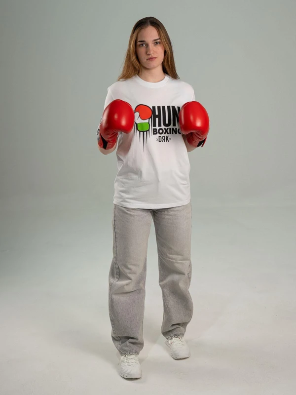 A következő leírás született:Ünnepeld velünk a háromszoros olimpiai bajnok, Papp László születésének 100. évfordulóját!A Dorko és a Magyar Ökölvívók Szövetségének közös, jubileumi kollekciója 2026.március 25-én, Papp László születésének 100. évfordulóján debütált.A pólókból és pulóverekből álló kollekció a háromszoros olimpiai bajnok előtt tiszteleg.A palettán a Szövetség-partnerség keretében készült szurkolói darabokat találhatsz. – Viseld büszkén, és szurkolj egy emberként a magyar ökölvívóinknak itthon és a világversenyeken!Kiváló minőségû anyagok, ikonikus dizájn – tökéletes választás sportrajongóknak.A női Modell 173 cm magas és S-es méretet visel.A férfi modell 180 cm magas és M-es méretet visel.