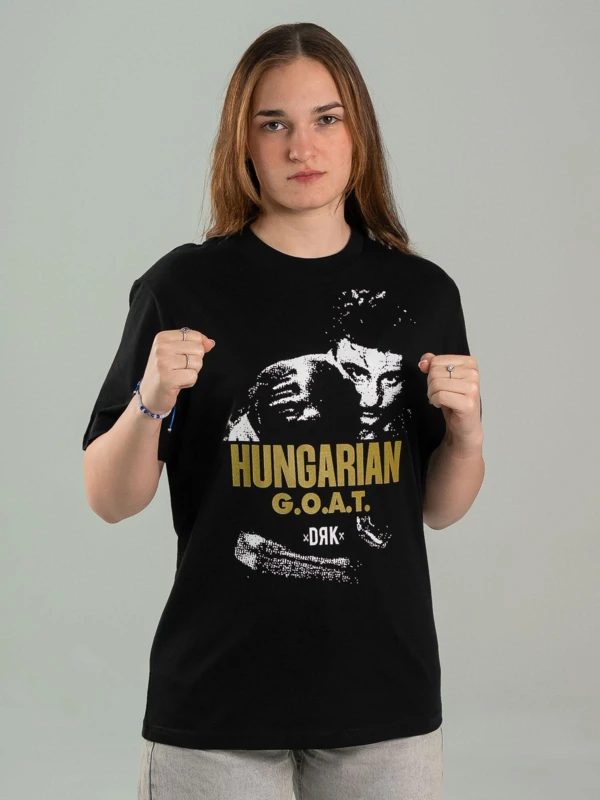 A következő leírás született:Ünnepeld velünk a háromszoros olimpiai bajnok, Papp László születésének 100. évfordulóját!A Dorko és a Magyar Ökölvívók Szövetségének közös, jubileumi kollekciója 2026.március 25-én, Papp László születésének 100. évfordulóján debütált.A pólókból és pulóverekből álló kollekció a háromszoros olimpiai bajnok előtt tiszteleg.A palettán a Szövetség-partnerség keretében készült szurkolói darabokat találhatsz. Viseld büszkén, és szurkolj egy emberként a magyar ökölvívóinknak itthon és a világversenyeken!Kiváló minőségû anyagok, ikonikus dizájn tökéletes választás sportrajongóknak.A női Modell 173 cm magas és S-es méretet visel.A férfi modell 180 cm magas és M-es méretet visel.