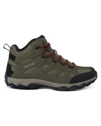 Férfi bakancs, Férfi középmagas szárú vízálló túracipő – stabil tartás és teljes védelem, Ez a középmagas szárú túracipő ideális választás, ha extra bokatartásra és megbízható vízállóságra van szükséged. A strapabíró, vízlepergető technikai szintetikus felsőrész hatékonyan taszítja a nedvességet, míg a párnázott gallér és nyelv kényelmes illeszkedést biztosít. Az ISOTEX membrán légáteresztő vízállóságot nyújt, a TECFOAM talpbetét pedig rugalmas, egész napos komfortot garantál., A megerősített orr- és sarokvédő fokozza a stabilitást és óvja a lábat, míg a TPR gumitalp könnyû, mégis rendkívül tartós, kiváló tapadással minden terepen., Ajánlott: túrázáshoz, kiránduláshoz, változékony időjárási körülmények között.