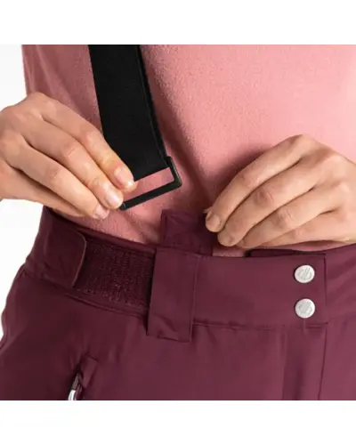 női sínadrág 20.000 mm, Ared 20 000-es vízálló, lélegző, négy irányba is rugalmas poliészter anyag, Tartós víztaszító felület, Ragasztott varrások, Meleg tapintású bélés a szárak felső részén, Levehető, állítható nadrágtartó, Gumírozott, állítható derékrész, Két cipzáros oldalzsebbel, Különlegesen szabott térdek, Kopásálló anyagrátét a belső bokán és az alsó szegélyen, Cipzáros alsó lábszár, hálós betéttel, Hószoknyához rögzíthető derékrész, Beépített kamásli