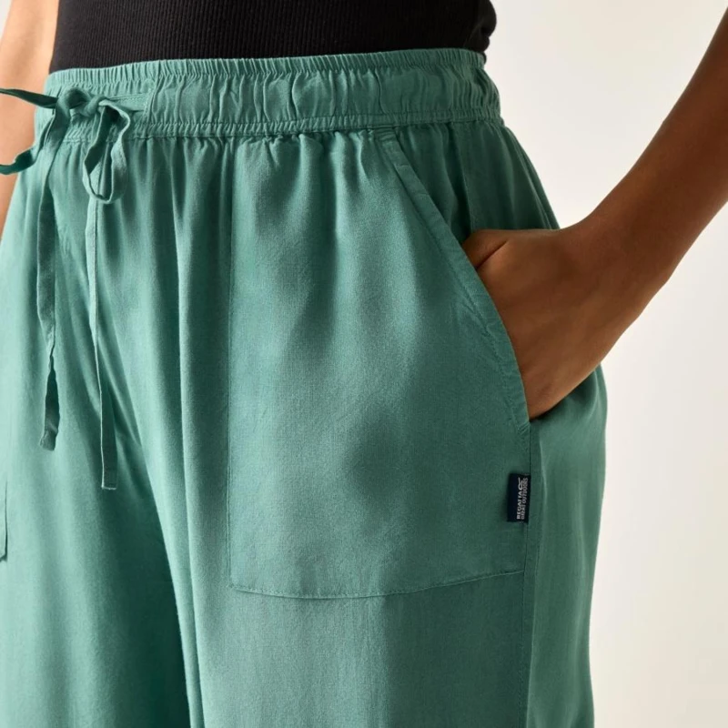 Női lenge nadrág, Prémium női könnyû viszkóz culotte nadrág légies szövés, rövidített hossz, 120 g/m?, Ez a női nadrág 100% könnyû, szőtt viszkóz anyagból készült, 120 g/m? súlyban. A lágy esésû, légies szövet kellemes komfortot és elegáns megjelenést biztosít meleg időben. Az egyszínû és teljes felületén mintás változatok sokoldalú stílust kínálnak, míg a rugalmas, húzózsinóros derékrész kényelmes, egyénre szabható illeszkedést tesz lehetővé., Főbb jellemzők:, 100% könnyû szőtt viszkóz anyag, 120 g/m?, Egyszínû és teljes felületén mintás változatban elérhető, Elasztikus derékrész húzózsinórral, 2 elülső zseb, Rövidített szárhossz, Lágy esésû, jól szellőző konstrukció, Ajánlott: Női culotte nadrágként ideális mindennapi viselethez, utazáshoz, városi programokhoz és nyári kirándulásokhoz. Kiváló választás meleg időben, amikor fontos a könnyû anyag és a kényelmes, mégis nőies megjelenés., Fenntarthatóság: A viszkóz természetes alapú cellulózszálból készül, kellemes viseletet és jó légáteresztést biztosít. A minőségi kivitel hozzájárul a hosszabb élettartamhoz, csökkentve a gyakori ruhacsere szükségességét.
