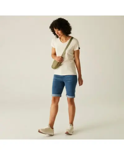 Női pamut póló, Anyag:, 160gsm single jersey – 95% BCI pamut / 5% elasztán, Tulajdonságok:, Szeletelt V-nyak kialakítás – modern, dinamikus megjelenés, Oldalsó osztott alsó él – fokozott mozgásszabadság és stílusos részlet, Garment washed kivitel – puhább tapintás és vintage megjelenés, UV-védelem (UPF) – extra védelem a káros napsugárzás ellen, Ideális választás mindennapi viselethez és szabadtéri tevékenységekhez.