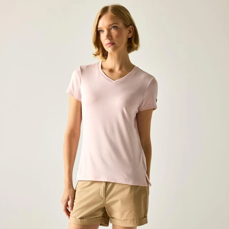 Női Póló, Prémium női pamut V-nyakú felső – UPF 50+ UV-védelem, rugalmas komfort, 160 g/m?, Ez a női felső 95% pamut / 5% elasztán single jersey anyagból készült, 160 g/m? súlyban. A természetes tapintású, rugalmas szövet kényelmes illeszkedést és egész napos komfortot biztosít. A V-nyakú kialakítás nőies megjelenést ad, míg a láncöltéses díszítés finom, igényes részletként emeli ki a modellt. Az UPF 50+ UV-védelem segít csökkenteni a napsugárzás káros hatásait., Főbb jellemzők:, 95% pamut / 5% elasztán single jersey anyag, 160 g/m?, V-nyakú kialakítás, Láncöltéses díszítés, Oldalsó hasítékok az alsó szegélynél, Rugalmas, kényelmes viselet, UPF 50+ UV-védelem, Ajánlott: Női pamut felsőként ideális mindennapi viselethez, utazáshoz, kiránduláshoz és nyári szabadtéri programokhoz. Kiváló választás, ha fontos a természetes anyagérzet és a napvédelem kombinációja., Fenntarthatóság: A magas pamuttartalmú anyag természetes komfortot és tartósságot biztosít. A minőségi kivitel hosszabb élettartamot eredményez, csökkentve a gyakori ruhacsere szükségességét.
