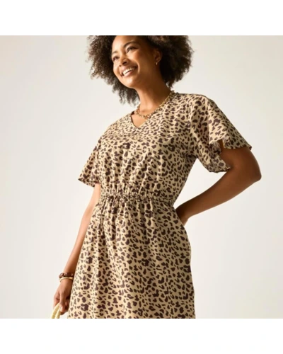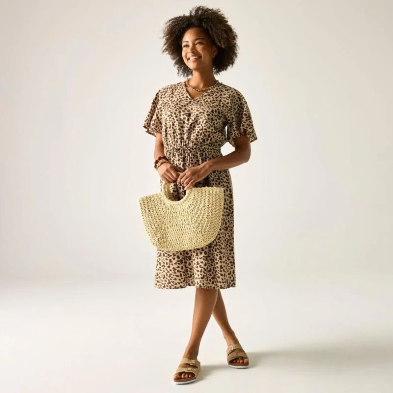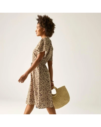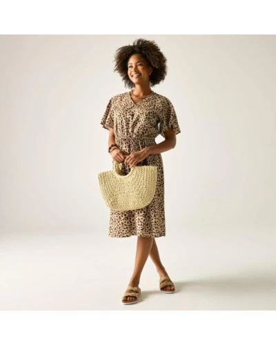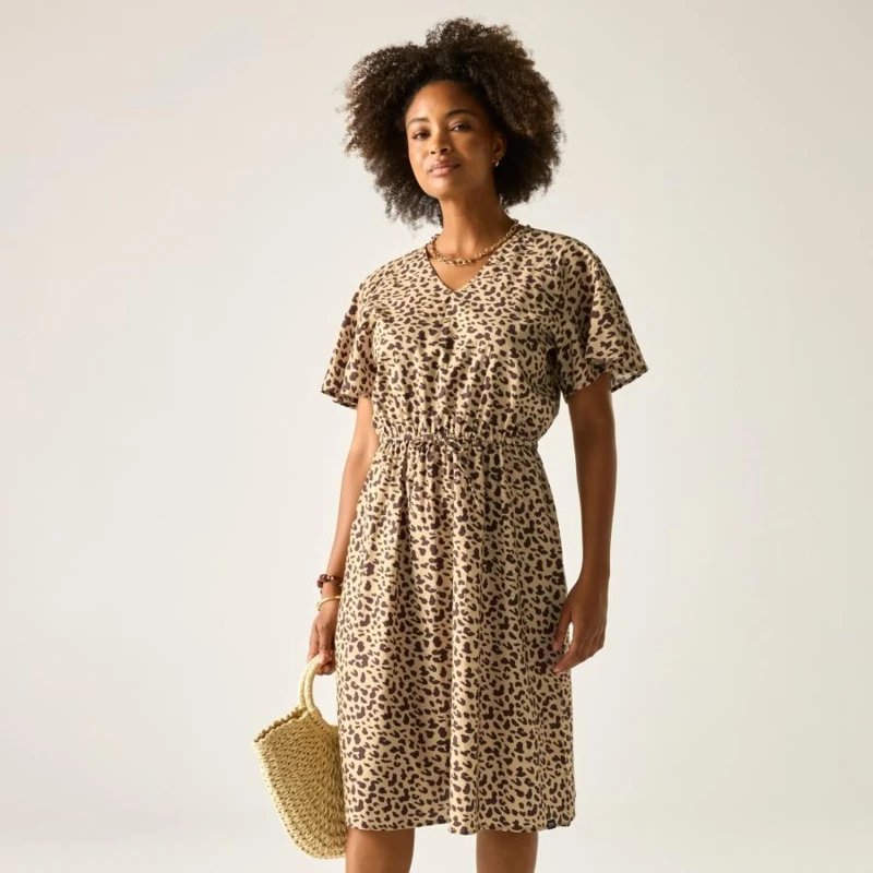 Női ruha, Prémium női könnyû pamut ruha – garment washed poplin, állítható derék, 110 g/m?, Ez a női ruha 100% pamut poplin anyagból készült, 110 g/m? súlyban. A garment washed eljárásnak köszönhetően az anyag puhább tapintású és természetesebb esésû. A V-nyakú kialakítás nőies megjelenést biztosít, míg az állítható húzózsinóros derékrész formálható, kényelmes illeszkedést tesz lehetővé., Főbb jellemzők:, 100% pamut poplin anyag, 110 g/m?, Garment washed kezelés a puhább tapintásért, V-nyakú kialakítás, Rövid ujjú fazon, Állítható húzózsinóros derékrész, Könnyû, jól szellőző konstrukció, Ajánlott: Női nyári ruhaként ideális mindennapi viselethez, utazáshoz, városi programokhoz és meleg időjárási körülmények között. Kiváló választás, ha fontos a természetes anyagérzet és a kényelmes, nőies szabás., Fenntarthatóság: A természetes pamut alapanyag kellemes viseletet és megfelelő tartósságot biztosít. A minőségi kivitel hozzájárul a hosszabb élettartamhoz, csökkentve a gyakori ruhacsere szükségességét.