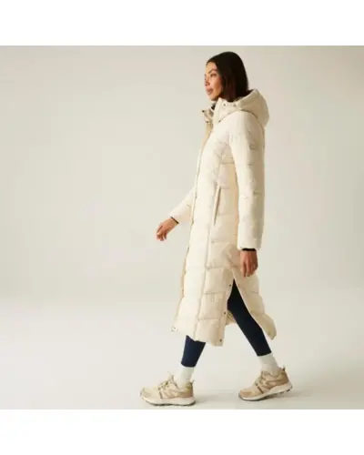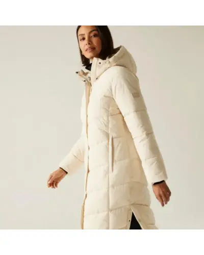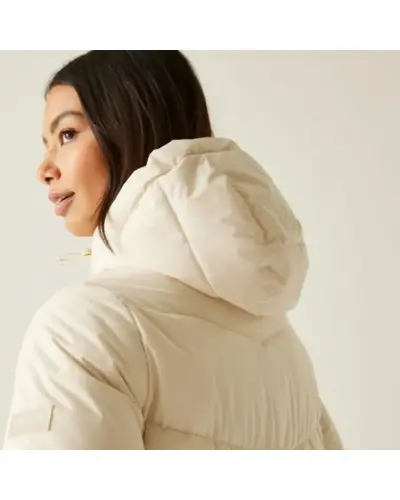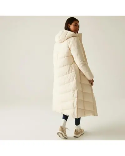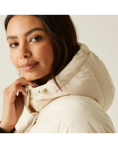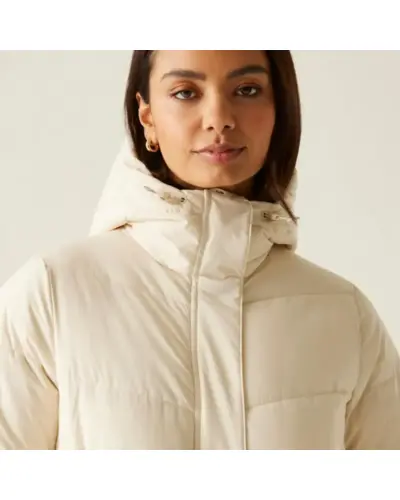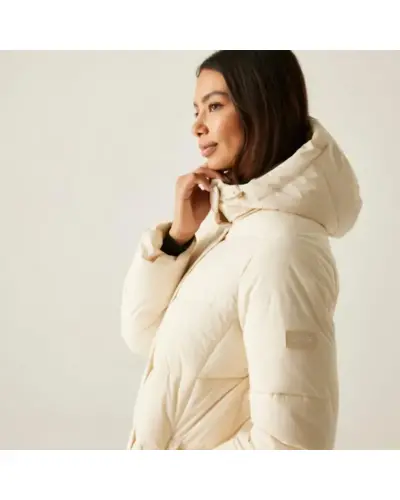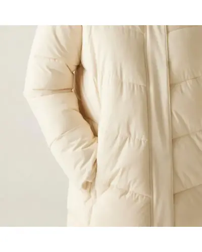Női télikabát, Női télikabát pehelymentes melegséggel és modern dizájnnal, Ez a könnyû, mégis rendkívül meleg női télikabát kiváló társ a hideg, nedves napokon. A vízlepergető, rugalmas poliészter anyag maximális kényelmet és mozgásszabadságot biztosít, míg a 280 g-os prémium újrahasznosított szintetikus töltet garantálja a pehelyhez hasonló melegséget állati eredetû anyag nélkül., A rejtett cipzáras zsebek, a belső biztonsági zseb, valamint a szélálló belső mandzsetták extra funkcionalitást kínálnak. A kabát oldalán található patentos nyílások nemcsak stílusosak, de könnyû mozgást is biztosítanak. A taffeta bélés és az állítható kapucni tovább növeli a komfortot. Ráadásul a modell újrahasznosított anyagokból készült, így környezettudatos választás is egyben., 100% poliészter stretch anyag 80 g/m?, 280 g-os újrahasznosított pehelymentes szintetikus szigetelés, Vízlepergető külső kezelés, 100% poliészter taffeta bélés, Fix kapucni állítható zsinórral, 2 alsó zseb rejtett cipzárral, Belső cipzáras biztonsági zseb, Belső viharhajtók a mandzsettáknál, Oldalsó, márkázott funkcionális patentok, Környezetbarát kialakítás újrahasznosított alapanyagokból, Meleg, praktikus és divatos ideális választás télre, Fenntartható megoldás a hideg napokra