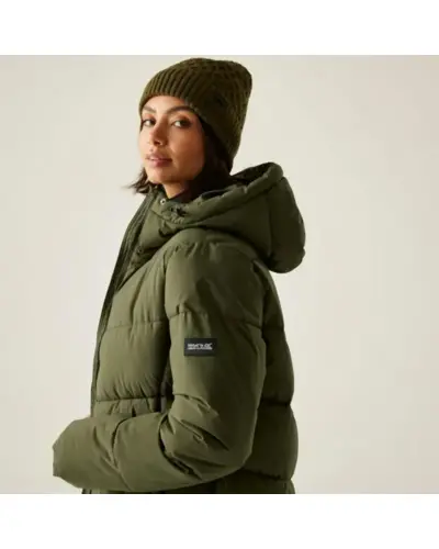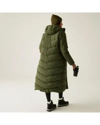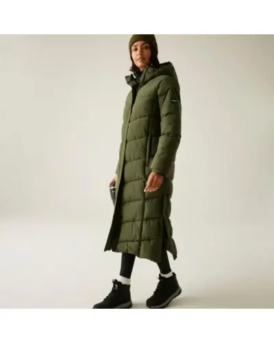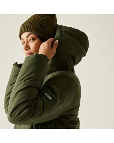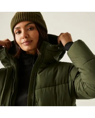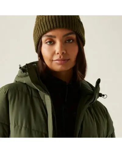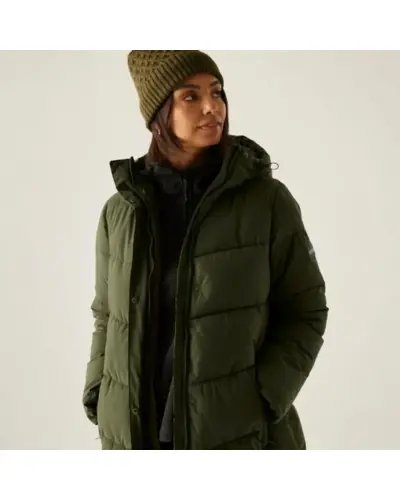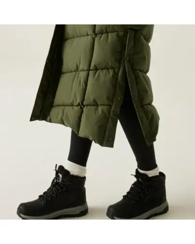 Női télikabát, Női télikabát – pehelymentes melegséggel és modern dizájnnal, Ez a könnyû, mégis rendkívül meleg női télikabát kiváló társ a hideg, nedves napokon. A vízlepergető, rugalmas poliészter anyag maximális kényelmet és mozgásszabadságot biztosít, míg a 280 g-os prémium újrahasznosított szintetikus töltet garantálja a pehelyhez hasonló melegséget – állati eredetû anyag nélkül., A rejtett cipzáras zsebek, a belső biztonsági zseb, valamint a szélálló belső mandzsetták extra funkcionalitást kínálnak. A kabát oldalán található patentos nyílások nemcsak stílusosak, de könnyû mozgást is biztosítanak. A taffeta bélés és az állítható kapucni tovább növeli a komfortot. Ráadásul a modell újrahasznosított anyagokból készült, így környezettudatos választás is egyben., 100% poliészter stretch anyag – 80 g/m?, 280 g-os újrahasznosított pehelymentes szintetikus szigetelés, Vízlepergető külső kezelés, 100% poliészter taffeta bélés, Fix kapucni állítható zsinórral, 2 alsó zseb rejtett cipzárral, Belső cipzáras biztonsági zseb, Belső viharhajtók a mandzsettáknál, Oldalsó, márkázott funkcionális patentok, Környezetbarát kialakítás – újrahasznosított alapanyagokból, ? Meleg, praktikus és divatos – ideális választás télre, ?? Fenntartható megoldás a hideg napokra